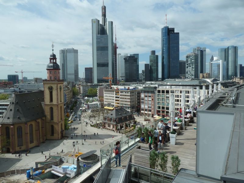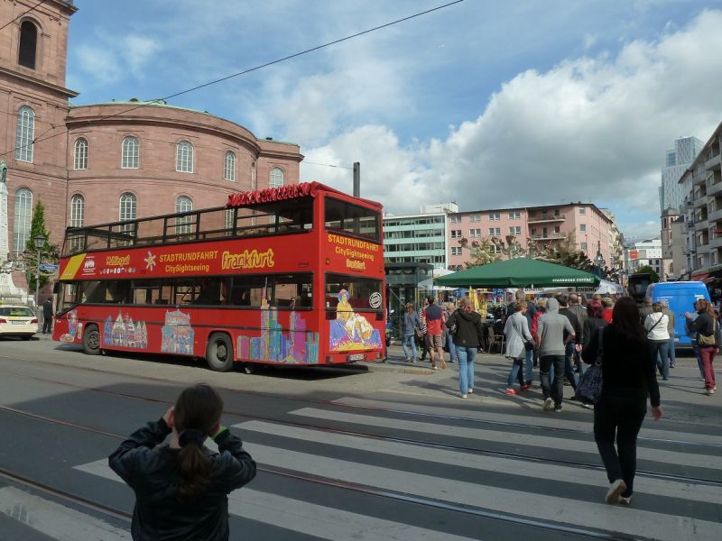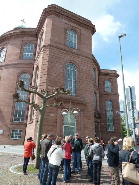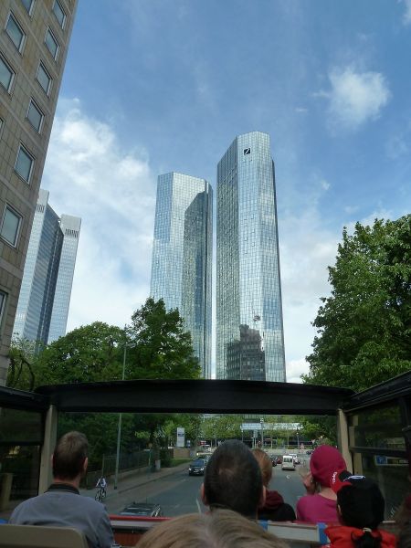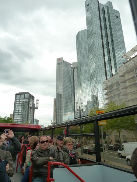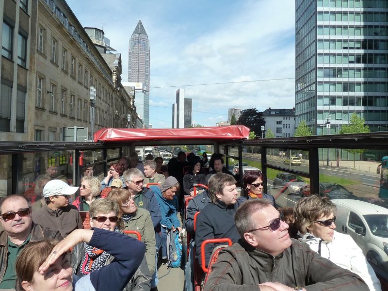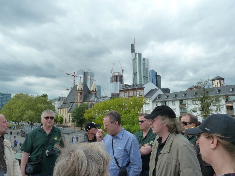 Am zweiten Tag, Freitag, den 10.05.2013, fuhren wir alle mit dem Linienbus und der U-Bahn in die Frankfurter Innenstadt, um von der Paulskirche eine Sightseeing Tour ins Bankenviertel zu starten, die sogenannte „Skyline Tour“. Eine Stunde ging es vorbei an die Hochhäuser des Bankenviertels, die Messe Frankfurt, den Frankfurter Hauptbahnhof und am Mainufer vorbei zurück zum Römerberg.