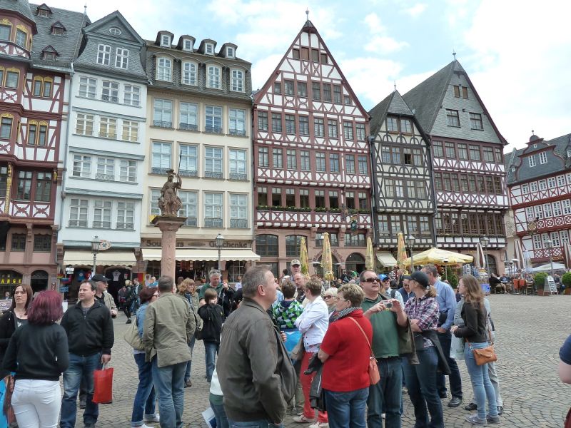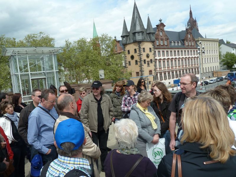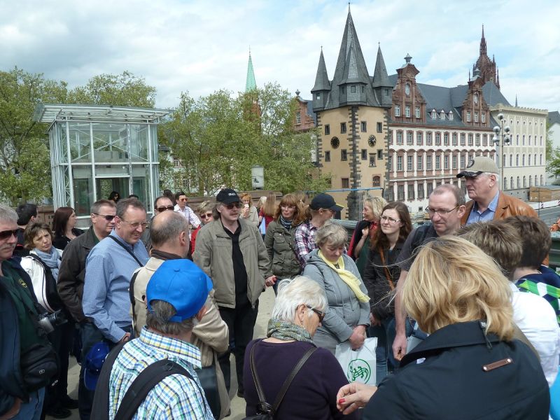 Dann ging auch schon die nächste Besichtigung los, die sogenannte „Walking Tour“ durch die Altstadt rund um den Römerberg bis auf die Fußgängerbrücke „Eiserner Steg“.