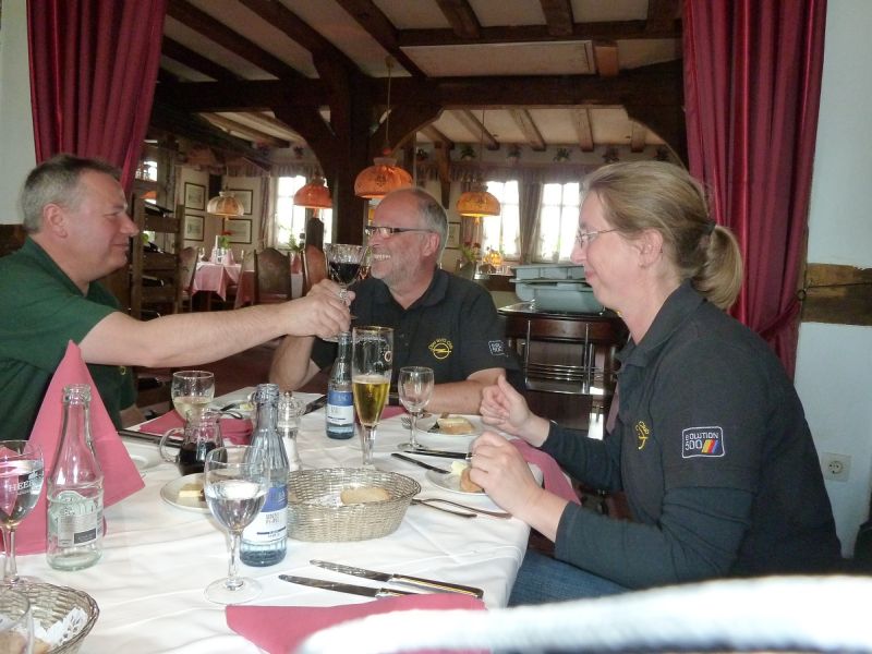 . Rolf hatte bei seiner Ankunft die Autos auf ihre Fahrtüchtigkeit hin überprüft (schraubt im Alltag ja nur an edlen Mercedesmodellen) und stieß breit grinsend zu unserer Gruppe und meinte, dass unser Präsident wohl in einer anderen Zeit lebt. Der, nie um eine Ausrede verlegen, schob die Verantwortung auf seinen Chefmechaniker und bemängelte die fehlende Fürsorge. Gelästert wurde das ganze Wochenende.
