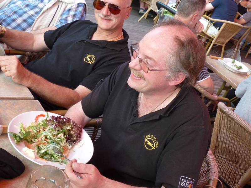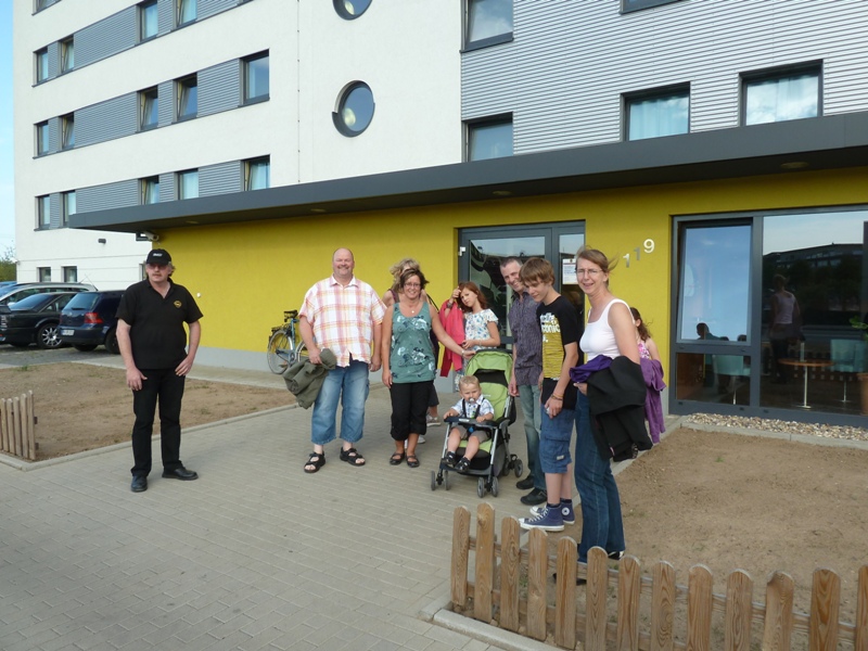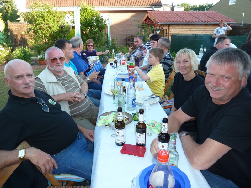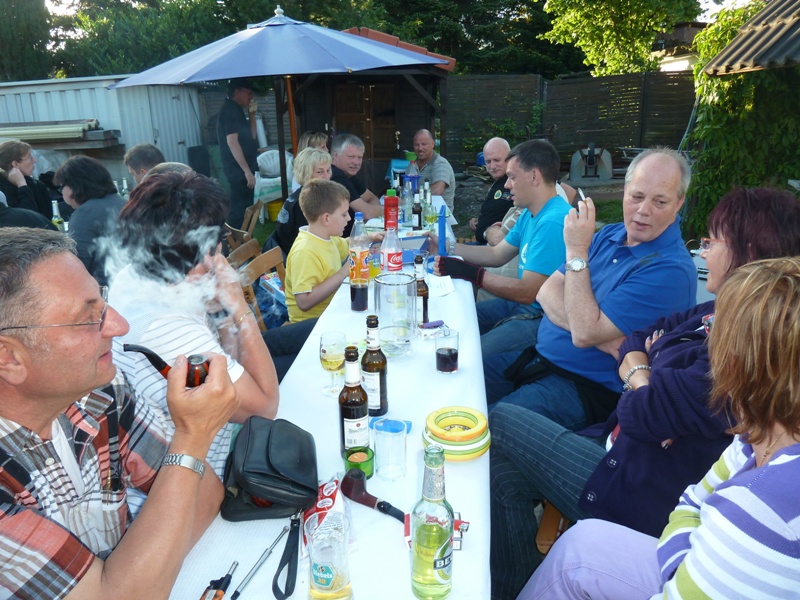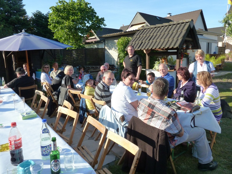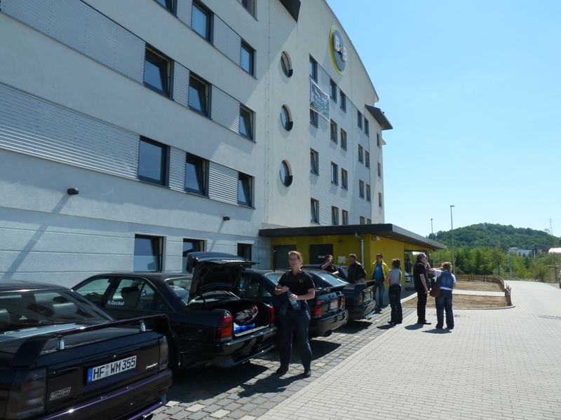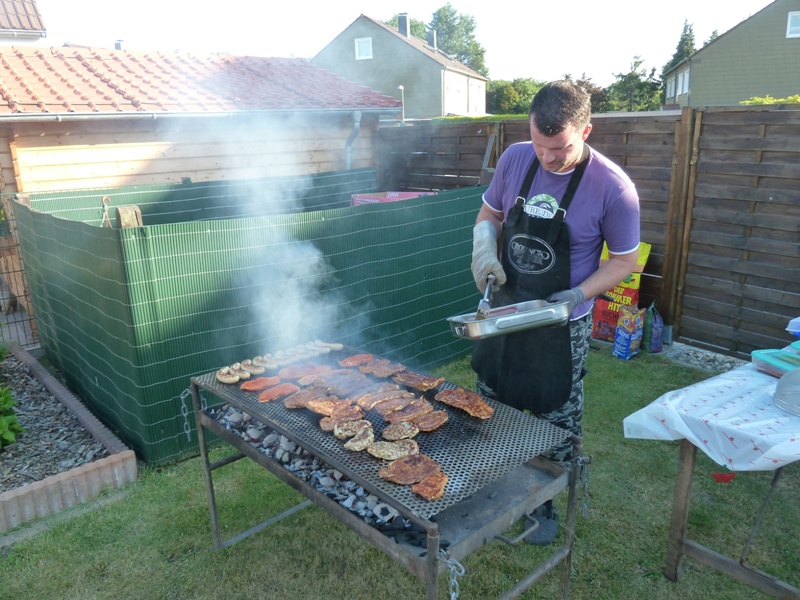 Als alle wieder zurück waren, war auch der Rest der “Opeltruppe” da, diejenigen, die jetzt erst kamen checkten erst mal ein und brachten ihr Gepäck auf die Zimmer. Dann wurden die Autos auf einen sicheren Parkplatz gebracht, nämlich zu MAN, der Arbeitsstelle von Jens. Dann wurden wir alle mit Bussen zurück zum Hotel gebracht. Alle gingen noch mal auf ihre Zimmer und dann fuhren wir zu Jens um zu Grillen. Alle wollten erst einmal die süßen, kleinen Haustierchen begrüßen. Die 4 Frettchen, nachdem die liebevolle Begrüßung abgeschlossen war ging es ans Grillen, es gab Fleisch, irgendwie ja klar, und viele leckere Salate.