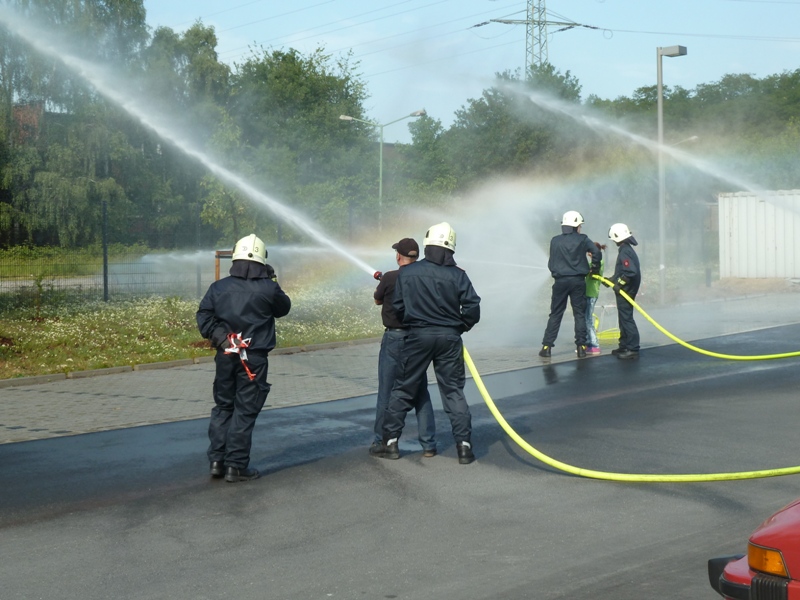Wir fuhren zu Jens’ Arbeitsstelle um sie zu besichtigen. Erst machten wir vor einer schöne Kulisse, schönere Fotos, von den schönsten Autos. Und gingen dann hinein um uns Helme und Brillen und Schuhe zu holen, wir sahen mal wieder* aus wie Bob der Baumeister. Viele fanden es wahrscheinlich sehr interessant. Eins fanden wir alle auf jeden Fall heraus, Jens redet viel und gerne. Da die kleineren Kinder nicht mitkommen duften fuhren diese mit einem Elternteil zum Sealife. Alle zusammen fuhren dann zur Freiwilligen Feuerwehr in Dinslaken, dort gar es erst etwas zu essen und dann besichtigten wir das gesamte Gelände. Es war sehr interessant und die Feuerwehr war sehr hübsch! Dann gingen alle in einem Salon essen, dort kamen wir um 8 Uhr an und die Köche brauchten teilweise ewig lange… Herbert wurde sogar vergessen. Dann konnte er erst gegen 11 Uhr essen.