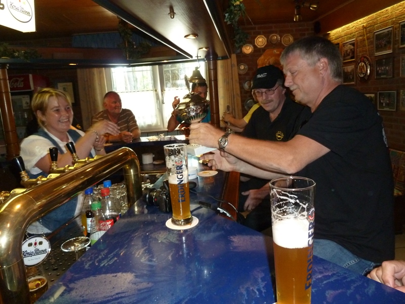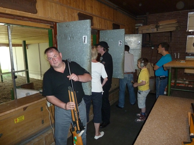 Hallo erst mal an alle die sich Zeit nehmen diesen Bericht zu lesen. Ich erzähle vom Treffen aus Oberhausen. Heute sind diejenigen, welche schon gegen 12 Uhr da waren zum Schützenhaus gefahren, Jeder durfte 5x schießen und am Ende wurden dann alle Punkte zusammen gezählt, geschossen wurde aus 50 Meter Entfernung, mit einem Kleinkalieber. Wer dann die höchste Punktzahl erreicht hatte gewann. Sieger war Wolfram, 2. Marcus und dritte war Erika. Conny gewann das Blindschießen. Das heißt: Hinter der Scheibe ist ein weißer Punkt, welchen man nicht sehen kann’s ist ein Glücksspiel, wer den Punkt zufällig trifft gewinnt dieses Spiel.