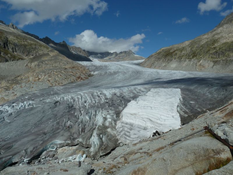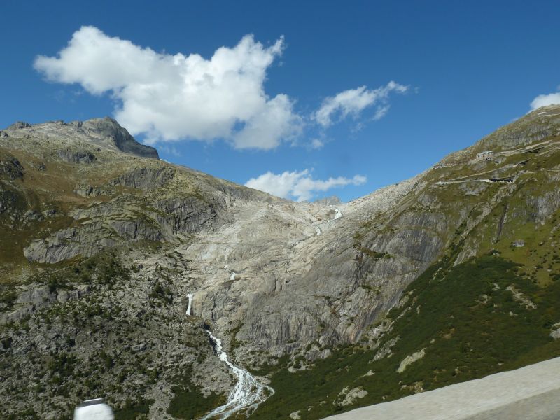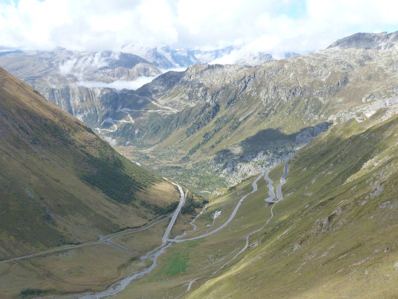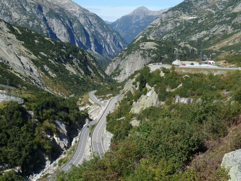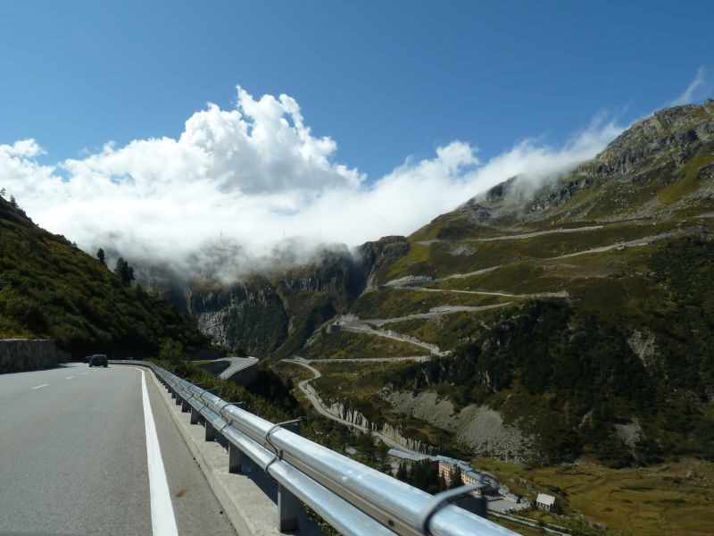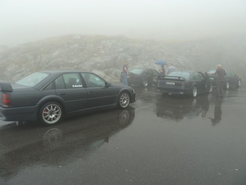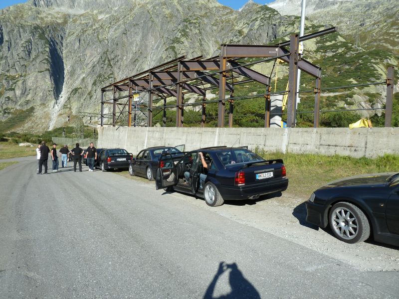 Am Mittwoch, den 14.09.2011 machten die bereits angereisten Clubfreunde eine Drei-Pässe-Fahrt über den Sustenpass (2224 m), den Furkapass (2431 m) und den Grimselpass (2165 m). Für diejenigen, die schon eine Weile im Berner Oberland Ferien gemacht hatten, war es der erste Tag mit schlechtem Wetter. Insbesondere der Sustenpass zeigte sich mit dichtem Nebel. In Andermatt gab es zur Erholung eine kurze Kaffeepause mit einem Bummel durch den Ort. Die Weiterfahrt brachte erst am Furkapass Wetterbesserung und die erhofften Sonnenstrahlen. Vor der Kulisse der Grimselwelt machten sich unsere Autos besonders gut. Auf der Abfahrt vom Furka erreichten wir den Rhonegletscher. Hier machten wir eine kurze Wanderung bis unter die Eisdecke des Gletschers. Alles erstrahlte in blauem Licht des Eises. Es folgte die Abfahrt hinunter bis zum Ort Gletsch und dann wieder hinauf auf die Passhöhe des Grimselpasses. Hier gab René grünes Licht für eine nicht ganz den schweizer Verkehrsregeln entsprechende Bergbezwingung. Man war zwar etwas nervös, hat aber Spass gemacht und keiner wurde erwischt. Auf der Nordseite des Grimsel ging es wieder bergab bis zur Gelmerbahn, die wir noch später wieder besuchen durften. Die dortige Hängebrücke war dank des Nebels nicht in ihrer wirklichen Dimension erkennbar, was für einige „Mutige“ auch gut war ;-)