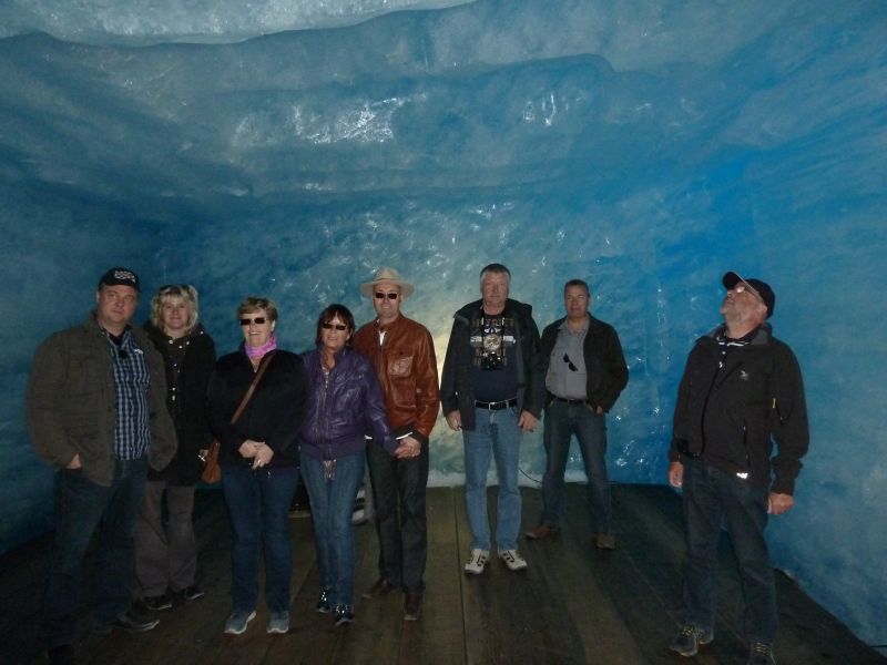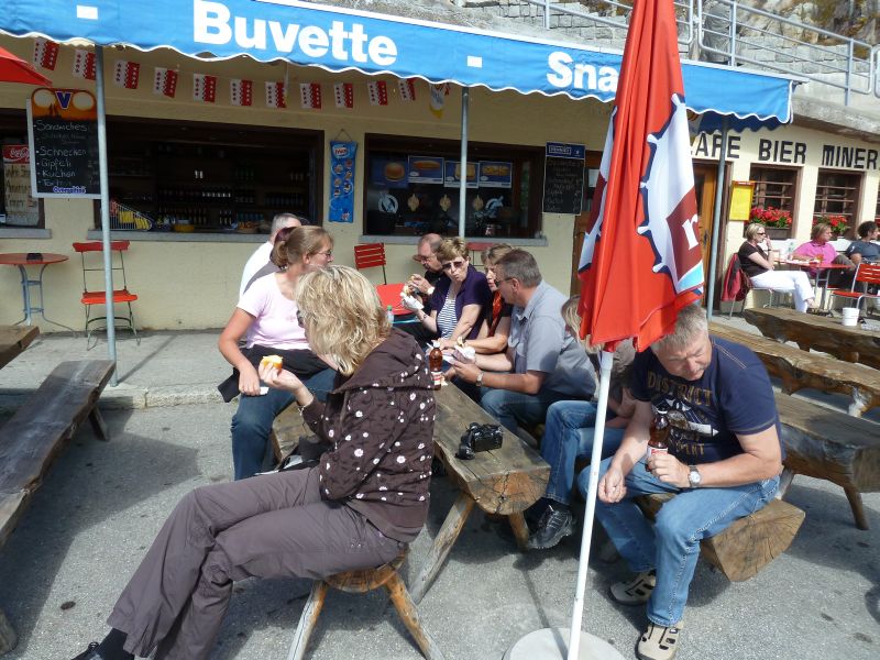 Danach gab es eine Stärkung in Innertkirchen, bevor wir den Grimselpass bis nach Gersteneck hinauf fuhren. Dort stand die Besichtigung des unterirdischen Wasserkraftwerkes Grimsel 2 auf dem Programm. Wir fuhren durch einen fünf Kilometer langen Stollen bis zur gigantischen Kraftwerkshalle. Dabei unterquerten wir den Grimselsee, der ca. 80 Meter über uns lag. Der ganze Fels ist aus Granit, das schafft Vertrauen! Es ist faszinierend, was da so unter den Fels in den Berg hinein gebaut wurde und wird. Besonders beeindruckend waren die Bergkristalle in der Kristallkluft, der schönsten Kluft (Aushöhlung), die je entdeckt wurde. Wieder draußen, blieb allen Lotus Omega im wahrsten Sinne des Wortes die Luft weg. Die EVO-Fahrer hatten gut lachen und boten eine Mitfahrgelegenheit an! Aber die verzweifelten Wiederbelebungsversuche hatten am Ende doch Erfolg.