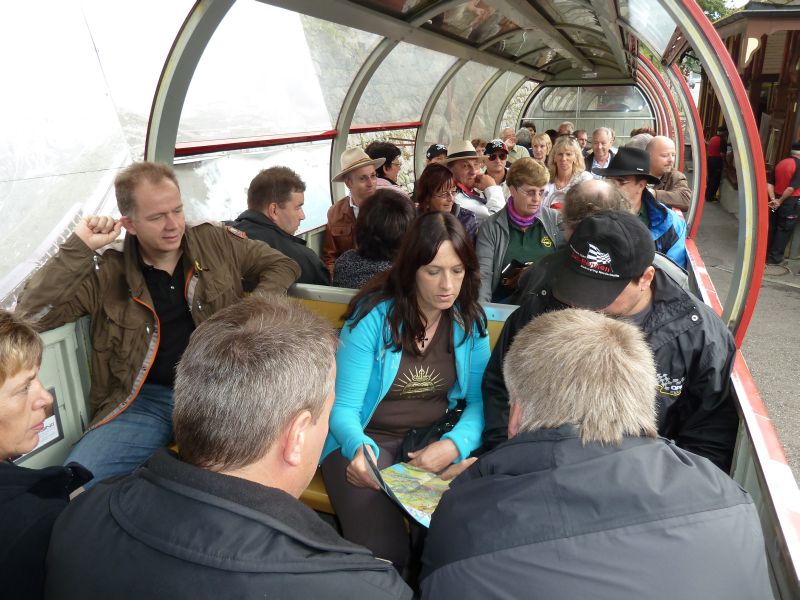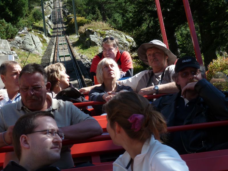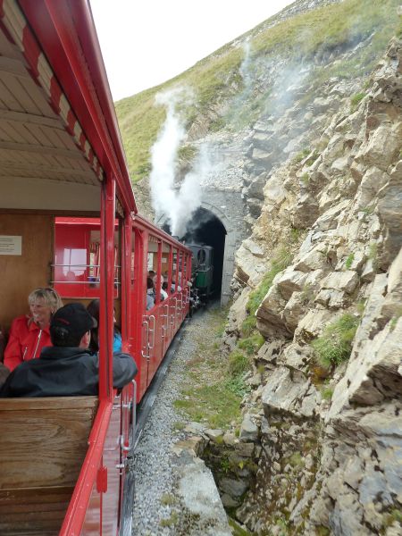 Auf dem Berg hatte jeder eineinhalb Stunden zur freien Verfügung. Danach ging es die Strecke wieder bergab. In den Tunneln echtes Dampflokfeeling. Jede Raucherkneipe ist dagegen ein Luftkurort ;-).