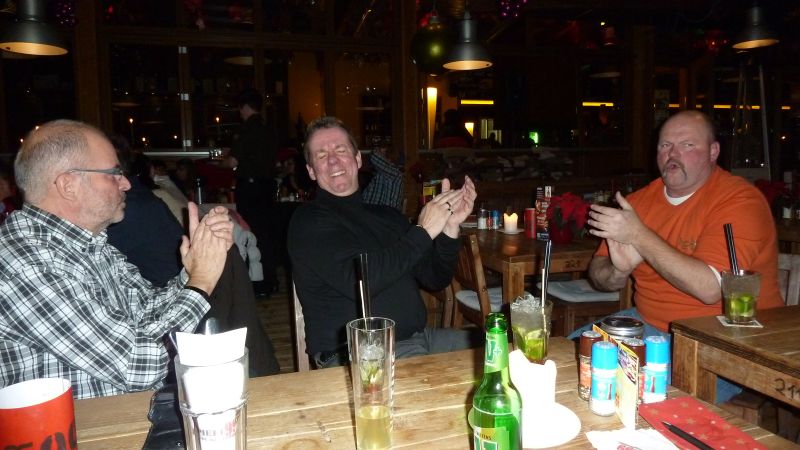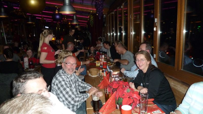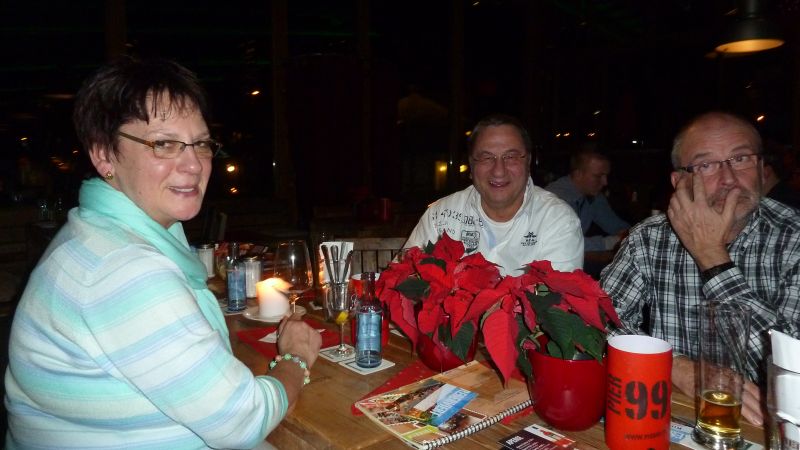 Im Hotel war im „Pier99“ ein Tisch für uns reserviert. Hier wurde ausgelassen weiter gegessen und getrunken. Beim Nachtisch kam sogar Traumschiffatmosphäre auf. Gesungen wurde auch, nur keine Weihnachtslieder. Wer waren wieder die Letzten? Die Gastgeber und Frank V. aus V.