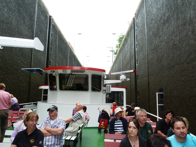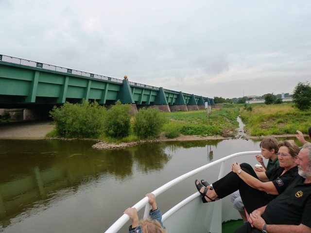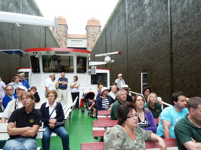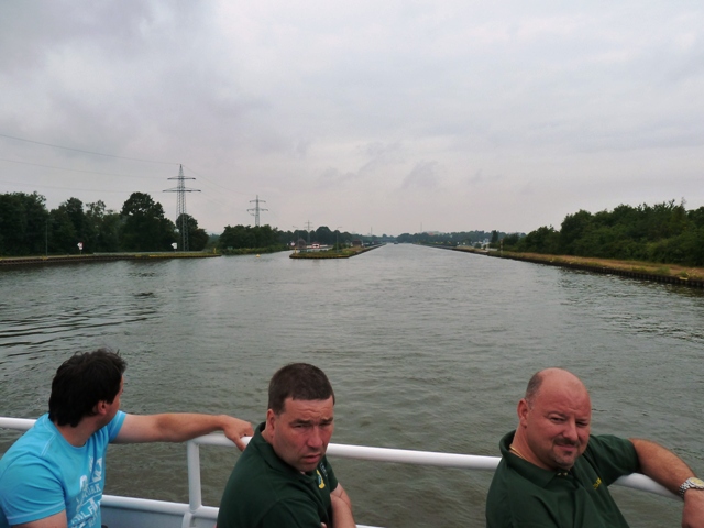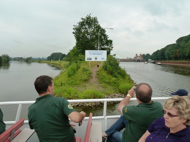 Wir saßen alle im Restaurant und frühstückten. Danach fuhren wir alle vom Hotel aus nach Minden zur Schachtschleuse am Mittellandkanal, um dort mit dem Schiff ein Stück über die Weser zu fahren! Nach der ca. 10 Minuten langen Schleusung fuhren wir mit dem Schiff namens „Poseidon“ über die Weser. Anschließend ging es weiter zur Porta Westfalica, zum Kaiser Wilhelm Denkmal. Das war sehr groß und schon sehr alt!