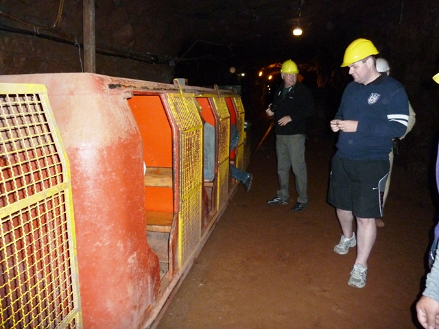 Wir gingen in eine Höhle unter die Erde; dort war es sehr, sehr, sehr, sehr, sehr … KALT! Ca. 9°C. Es fühlte sich bei Manchen an wie -9°C! Aber es war sehr interessant. Unser Führer erklärte wie alles funktionierte und machte es sogar meistens vor. Wir fuhren auch mit einem Mini-ICE, einem sehr kleinem Zug, könnte man sagen! Es war schön aber KALT!