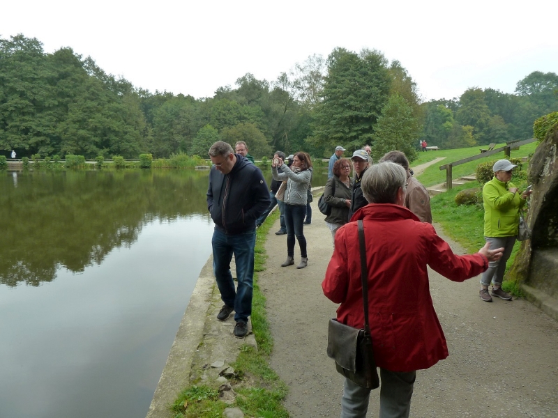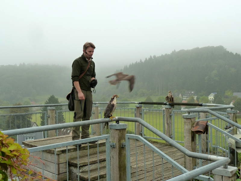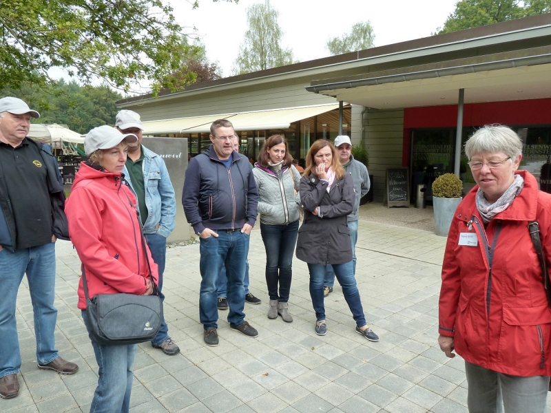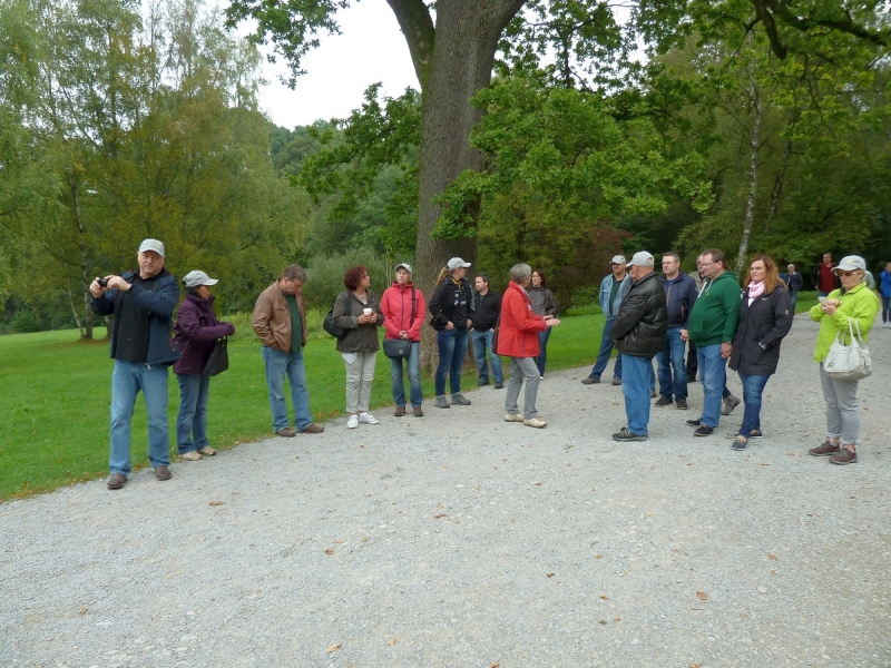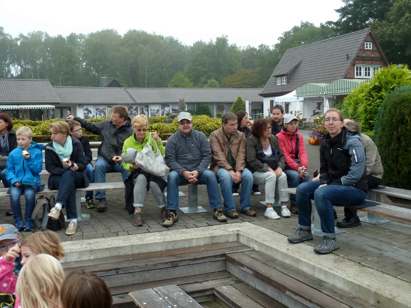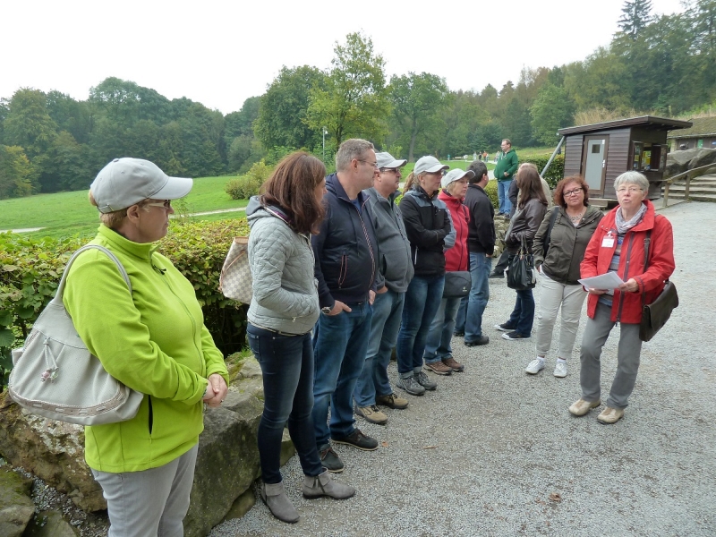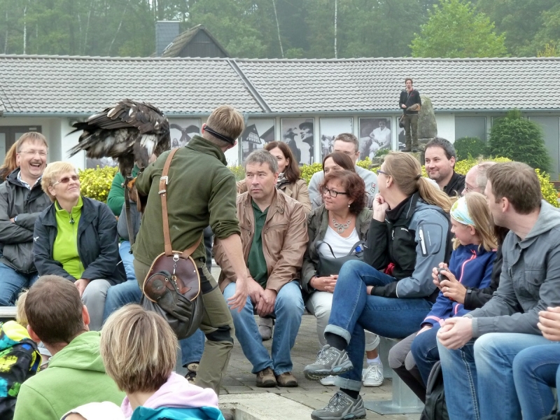 Am Samstag, den 13. September ging nach dem gemeinsamen Frühstück die Fahrt zur „Adlerwarte Berlebeck“. In der sehr gepflegten Anlage sahen wir uns zunächst die verschiedenen Raubvögel innerhalb und außerhalb ihrer Gehege an. Zwei von ihnen hatten starkes Interesse an den Schuhen und Schnürsenkeln der Besucher. Man wurde sie fast nicht mehr los.