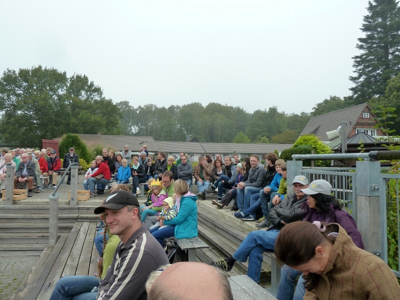 Das Beste war dann aber die Flugschau, wobei die Vögel nicht immer so reagierten, wie der Falkner wollte. Er erläuterte, dass manchmal ein Vogel sogar einige Tag weg bleibt. Aber es ist immer wieder beeindruckend, wenn die Tiere völlig lautlos im Tiefflug über die Köpfe der Zuschauer hinwegsegeln und ihre Flugkünste zeigen.