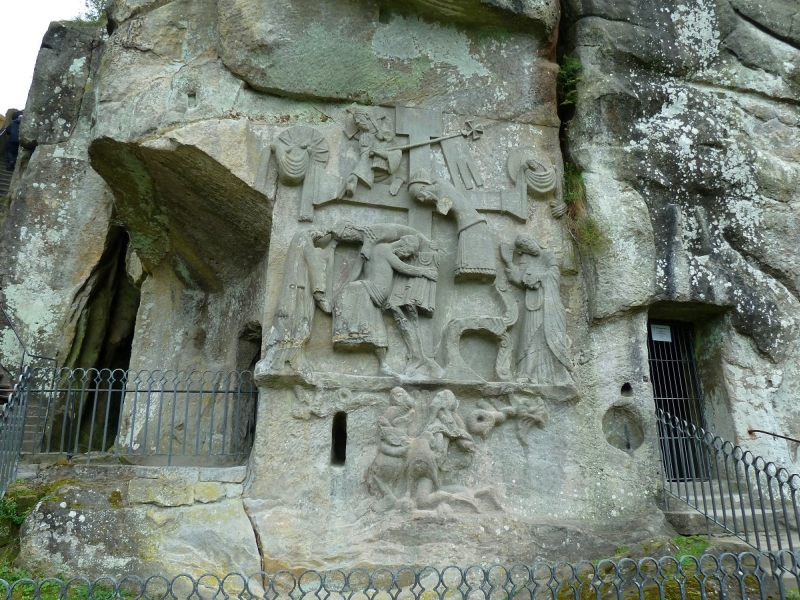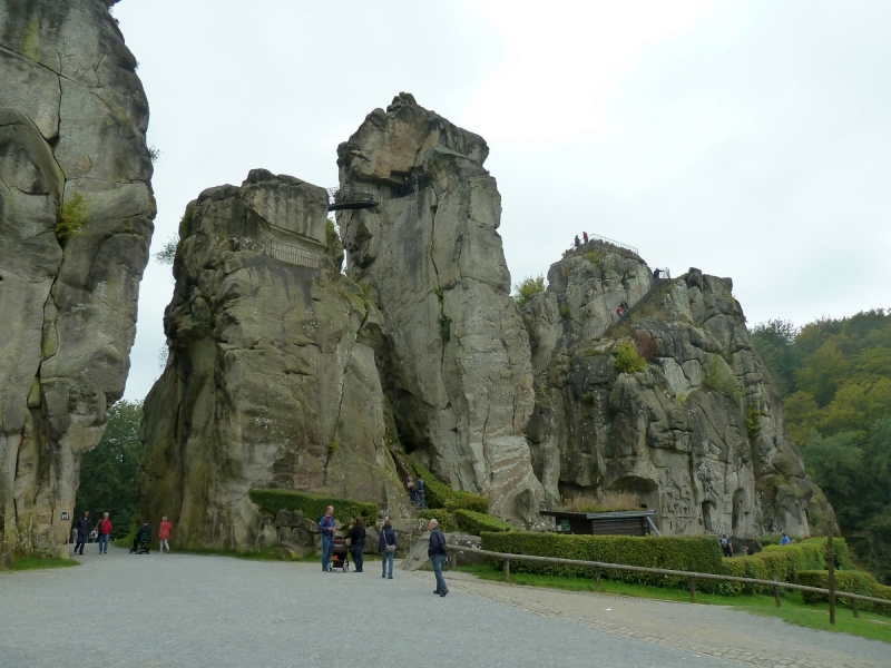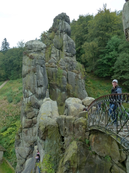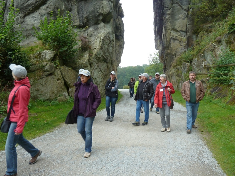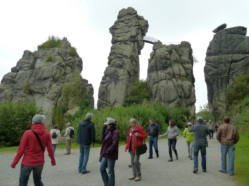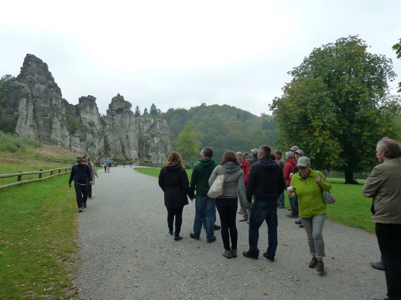 Gestärkt erreichten wir nach einem kurzen Fußmarsch die Extersteine. Hierbei handelt es sich um eine monumentale Sandsteingruppe im Herzen des Lippelandes. Es ist eine mittelalterliche, sakrale Stätte, von der vermutet wird, dass hier im Hochmittelalter die heiligen Stätten Jerusalems mit dem Grab Christi, der Kreuzauffindungsgrotte und dem Felsen Golgatha nachgebildet wurden.