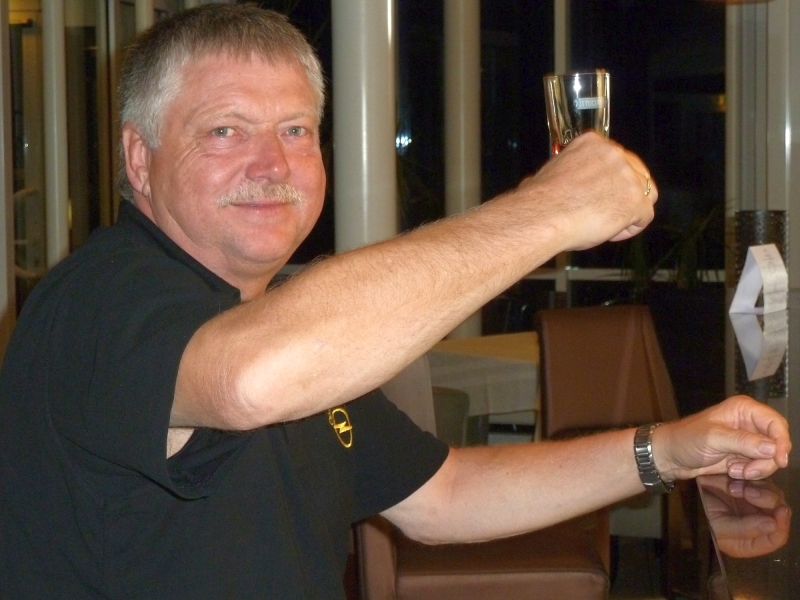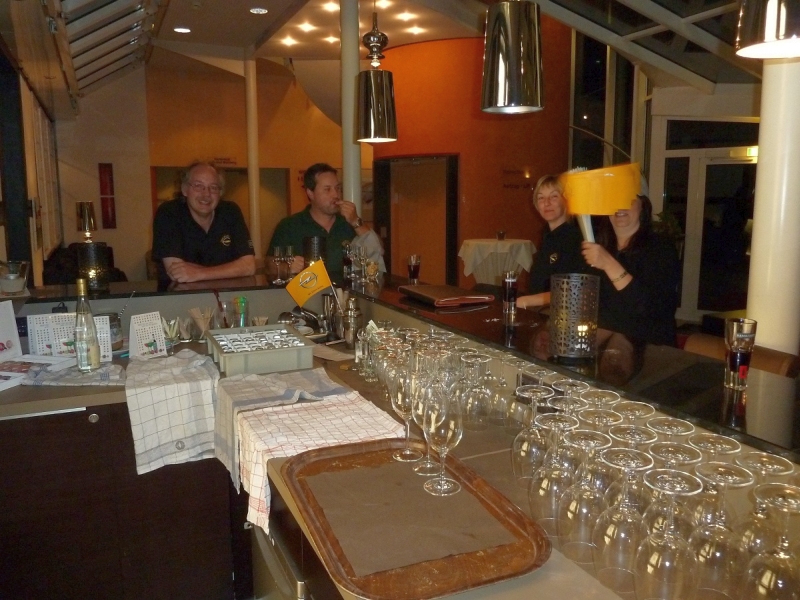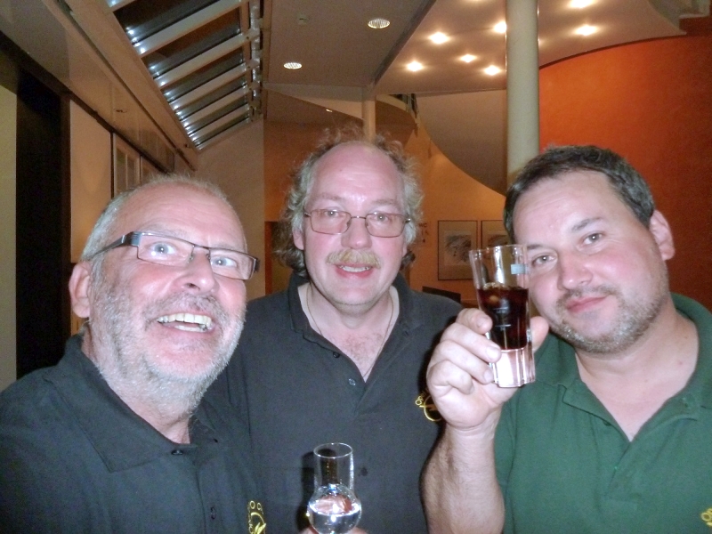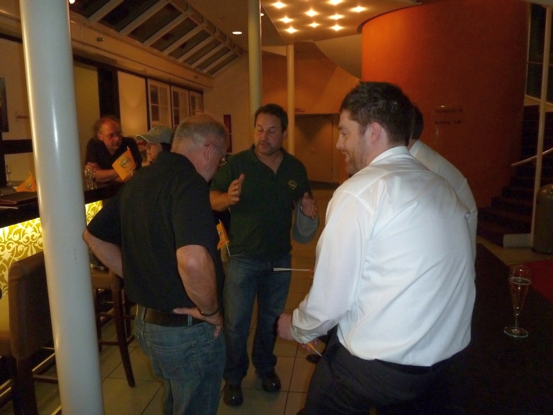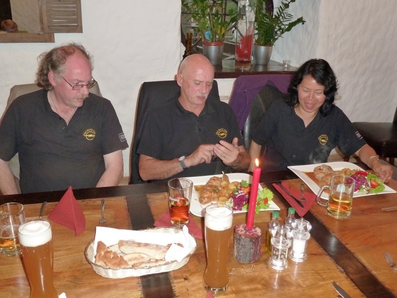 Um zirka 2 Uhr zogen die harten und furchtlosen Clubmitglieder von der Lounge zur Hotelbar um. Zur Beseitigung des Völlegefühls tranken wir ab da nur noch klaren Fruchtsaft aus kleinen Gläsern. Nachdem wir auf Selbstbedienung umgestellt hatten, nahm die Stimmung weiter zu und es entstanden Aufnahmen von seltenen Vögeln am Tresen.