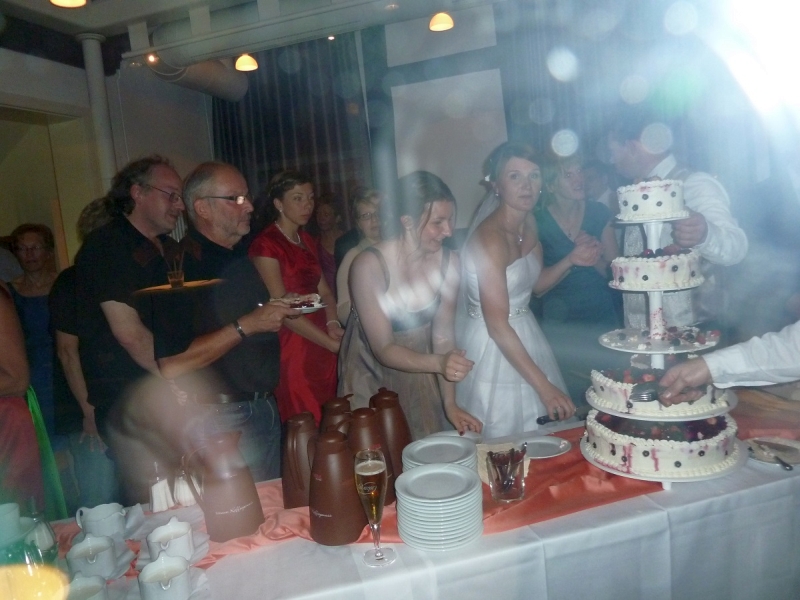 Der Abend klang wieder in der Lounge des Hotels aus. Nebenan im Raum fand eine Hochzeit statt. Der Bräutigam hatte uns zum Nachtisch und Verzehr der Hochzeitstorte eingeladen. Rolf und ich zögerten nur kurz, dann reihten wir uns in Gästeschar ein. Das gab kurz Verwirrung bei der Braut, aber wir konnten die Situation klären und bekamen doch ein Stück Kuchen ab.