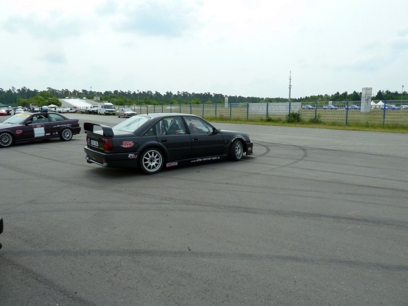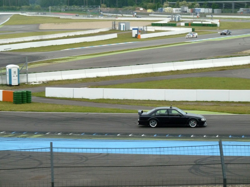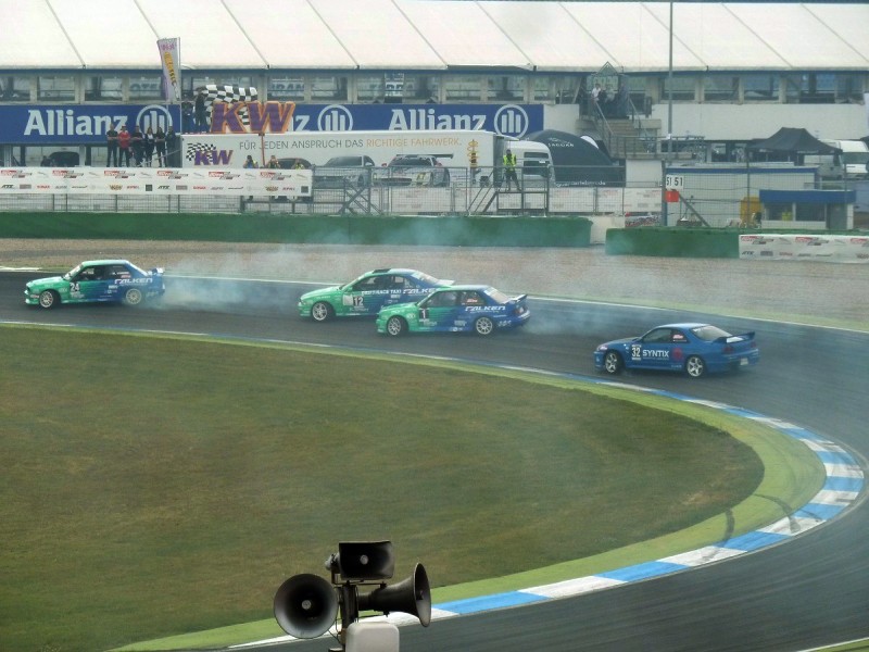 Es begann aber ganz harmlos am Samstag auf der Tribüne des Motodroms, wo wir uns die sport auto Driftchallenge ansahen. Immer wieder toll anzusehen, insbesondere, wenn die Profis mit vier Autos im parallelen Drift durch die Sachskurve jagen und sich hinten acht Reifen bei vorne 6000 Umdrehungen in Qualm auflösen.
