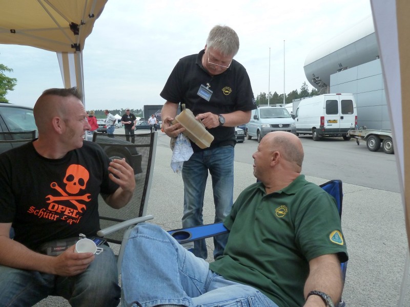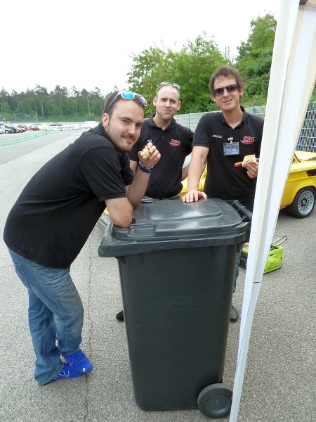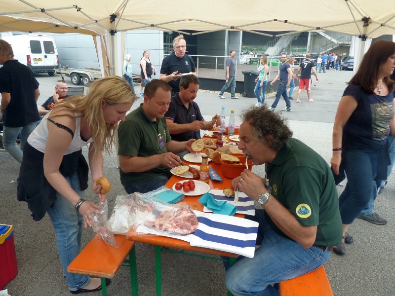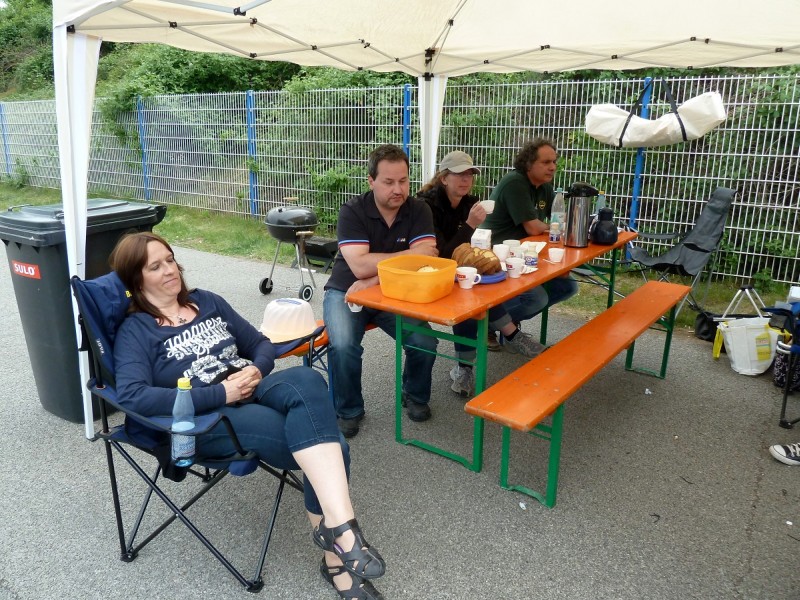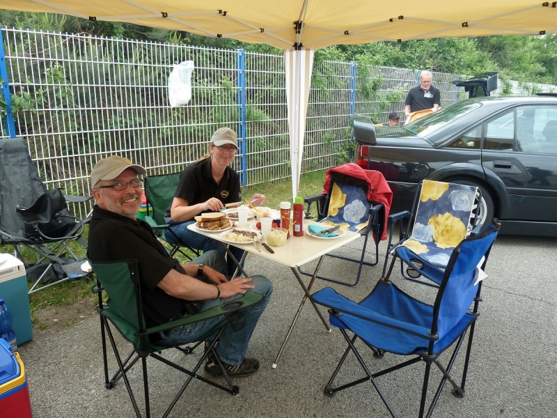 Alle stehen wieder in der Box und erholen sich. Die Autos kühlen ab und wir genießen Kaffee und Kuchen von Angela.