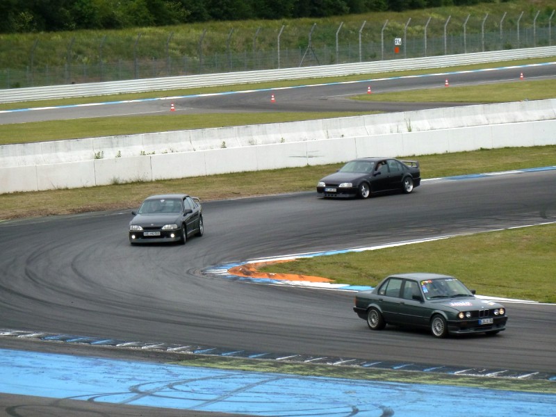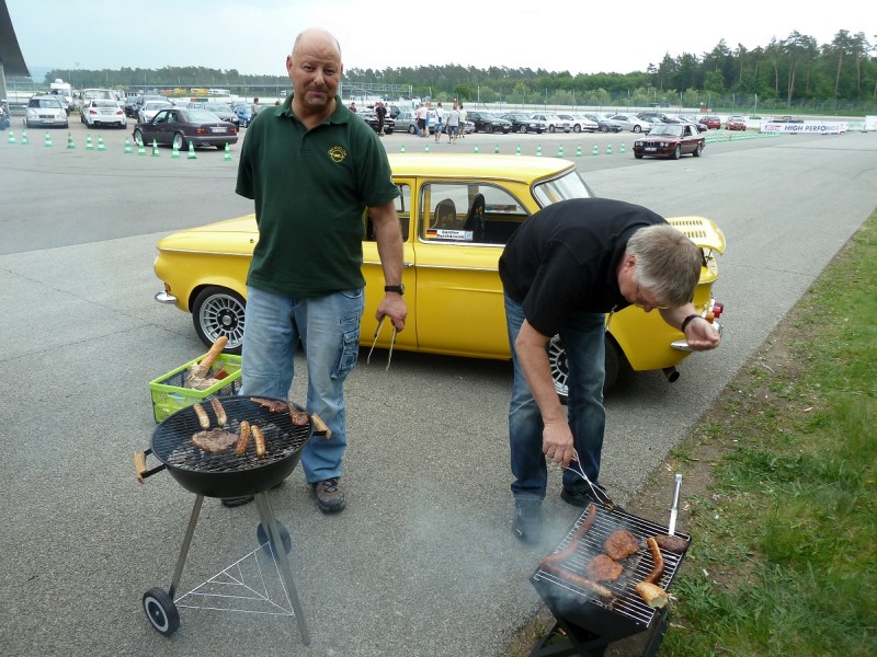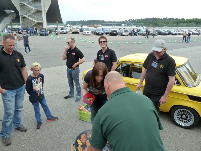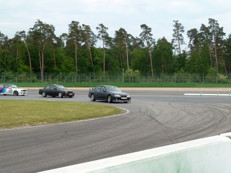 Dann wurde wieder gefahren. Früh beschleunigen, spät bremsen, Randsteine mitnehmen, nur nicht nachlassen, zeigen wo der Hammer hängt. Sch…. ist der M3 in der Kurve schnell, aber auf der Geraden komm ich wieder. Die Bremsen fangen an zu ruckeln. Die Karre wird heiß, ich auch. Besser ist eine Pause für mein Schätzchen, für mich auch.