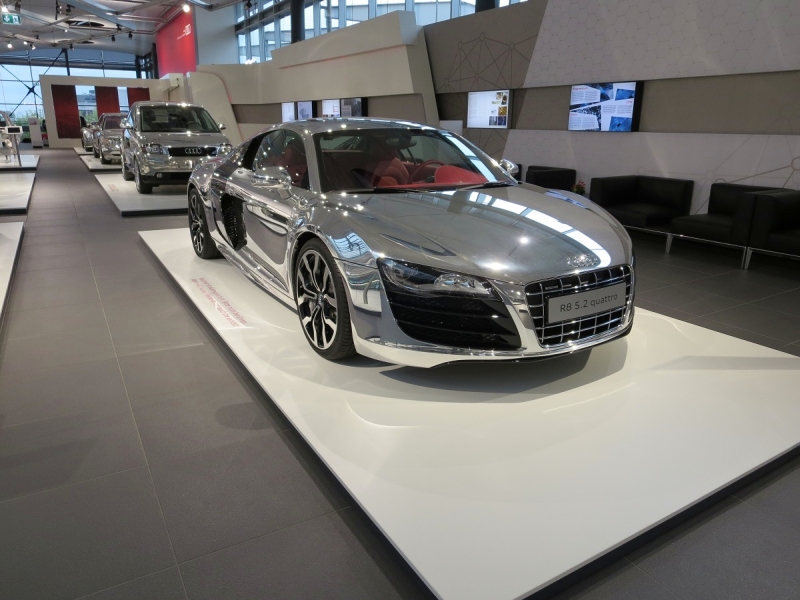 Wir hatten bis zum Start der Führung noch etwas Zeit und so weckte die Fahrzeugausstellung unser Interesse. Das Forum ist eine Erlebniswelt verteilt auf 10.000 Quadratmetern und zeigt wofür Audi steht.