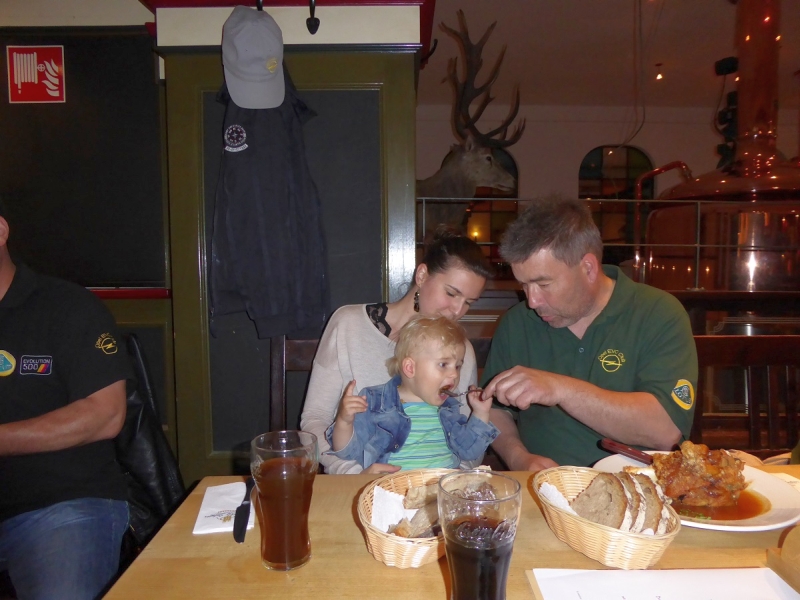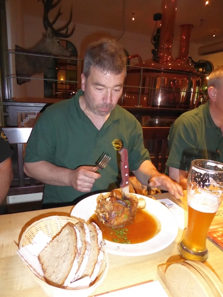 Vom Forum ging es zurück Richtung Hotel. Auf dem Weg dorthin machten wir die Mittagspause im Brauhaus Neckarsulm. Hier gab es was Deftiges. Bernd schien wohl besonders hungrig zu sein, stellte sich aber wohl doch die Frage: Krieg ich das auf? Da musste doch das Enkelkind schon mithelfen.
