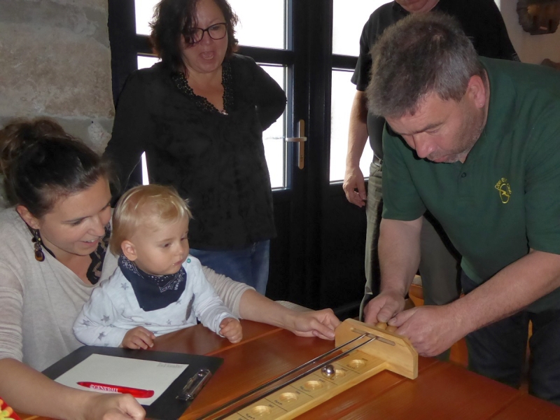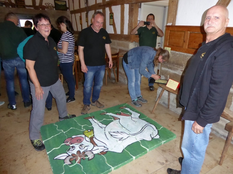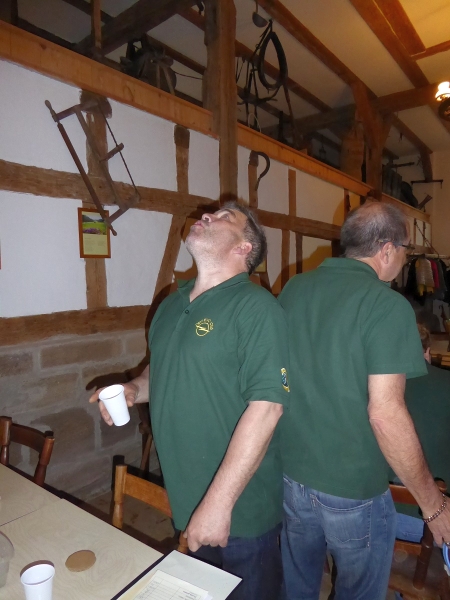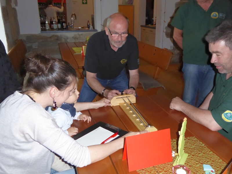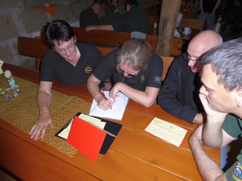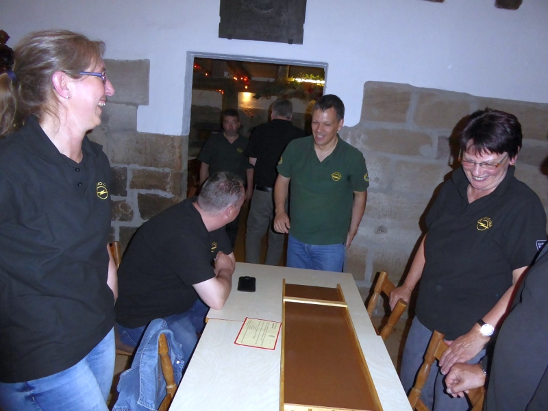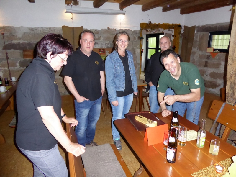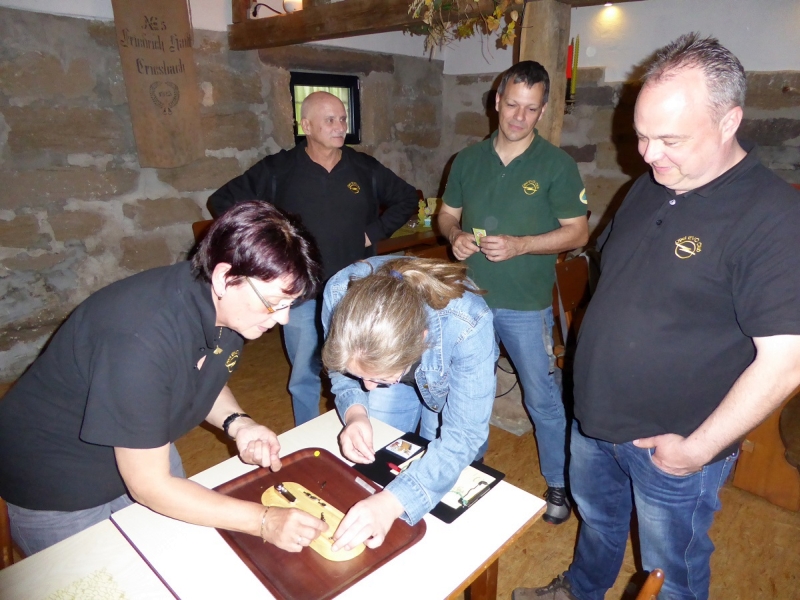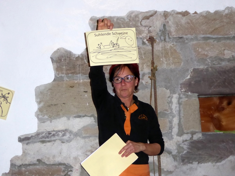 Ich weiß zwar leider nicht mehr die Gruppenreihenfolge aber die erzielten Punkte in aufsteigender Reihenfolge hatte ich notiert. Platz fünf mit 9.000 Punkten, Platz vier mit 10.000 Punkten, Platz drei mit 19.000 Punkten, Platz zwei mit schon 27.000 Punkten und dann von der Gastwirtin Sibylle verkündet, der neue Weltrekord in Oberrot, Platz eins mit sage und schreibe 77.000 Punkten ging an die Gruppe „Suhlende Schweine“. Diese Punktzahl hatte es noch nie gegeben.