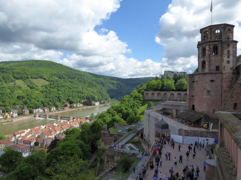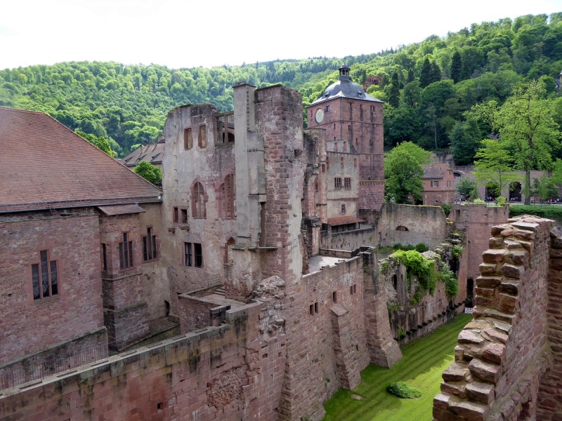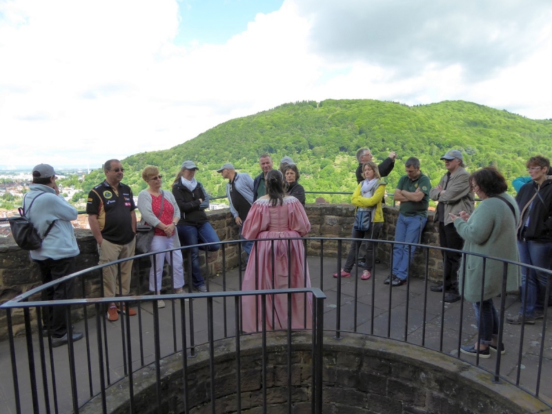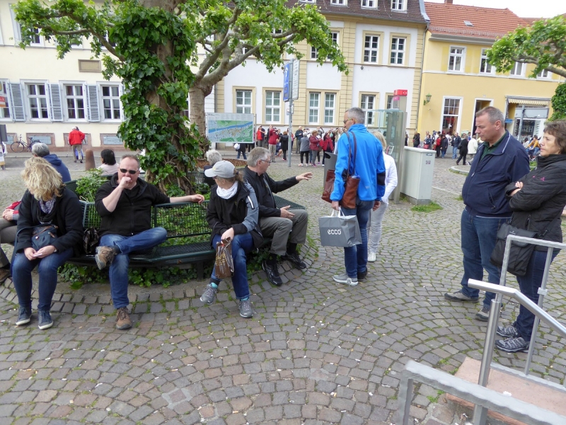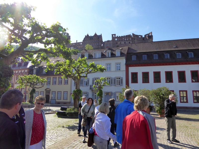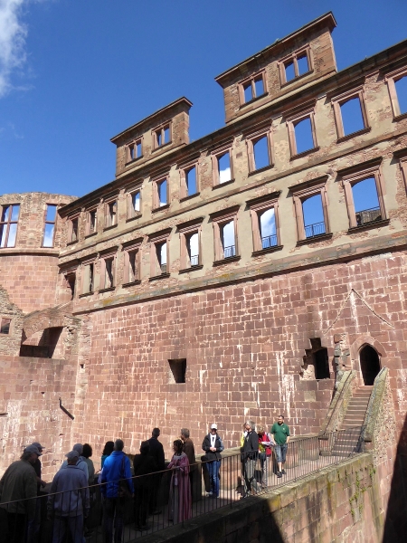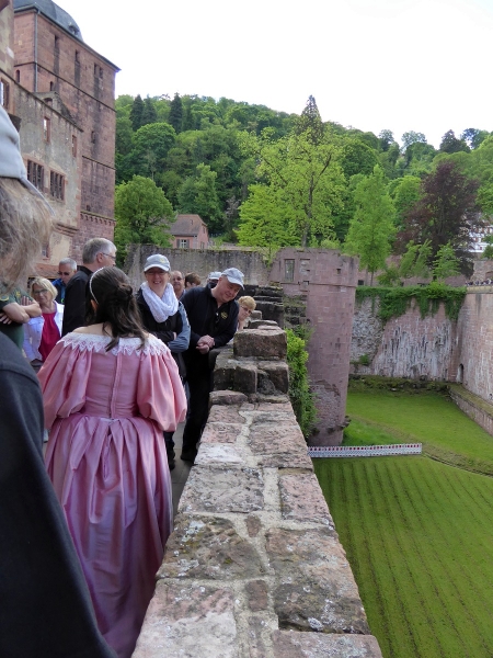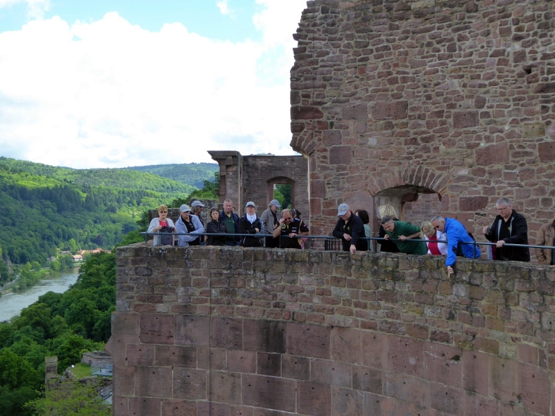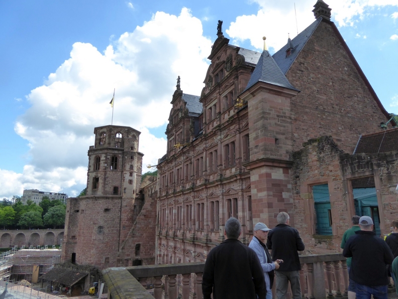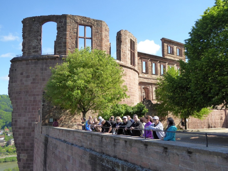 Am Samstag, den 20. Mai stand ein Besuch Heidelbergs auf dem Programm. Unser erstes Ziel war natürlich das Heidelberger Schloss. Mit der Standseilbahn ging es aus der Heidelberger Altstadt hinauf aufs Schloss, das ca. 80 Meter über dem Neckar liegt. Es ist wohl die bekannteste Schlossruine Deutschlands. Das Schloss wurde im Pfälzischen Erbfolgekrieg in zwei Angriffen der Franzosen 1689 und 1693 zerstört. Bis dahin war es Residenz der Kurfürsten von der Pfalz. Eine Teilwiederherstellung geschah in den Jahren 1897 bis 1900.