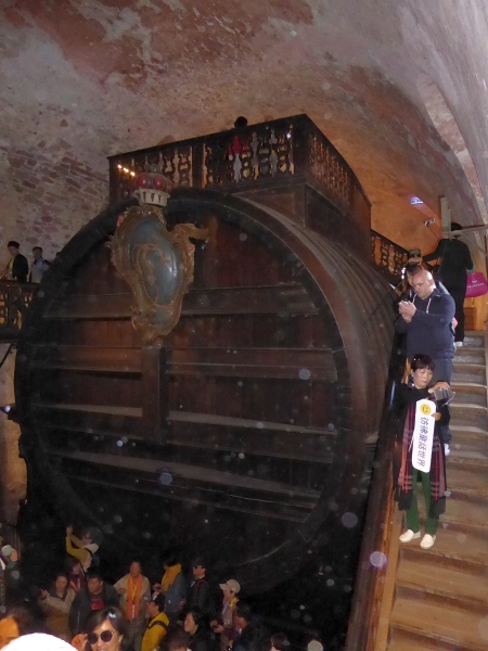 Das große Fass im Fassbau ist eine besondere Attraktion. Das heutige dritte große Fass hat ein Fassungsvermögen von 220.000 Liter Wein. Direkt aus dem Fass konnte der Wein bei Feiern in den Königssaal gepumpt werden. Die Plattform auf dem Fass ist über eine Treppe erreichbar und dient wohl früher als Tanzboden.