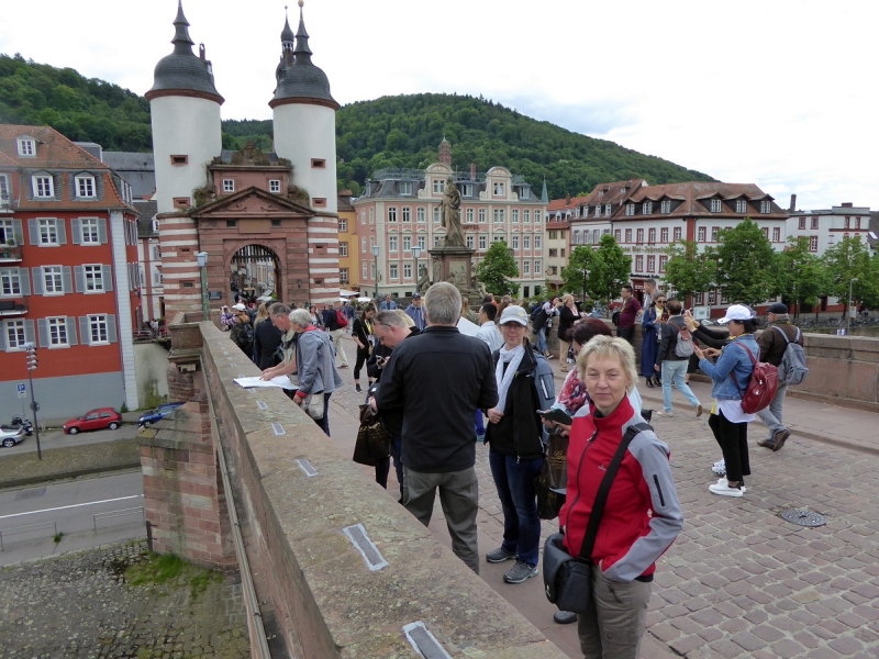 Nach der Besichtigung des Schlosses stand uns für einen Stadtrundgang Zeit zur Verfügung. Wir teilten uns je nach Interessenslage in kleine Gruppen auf und bummelten durch die Altstadt. Von der Carl-Theodor-Brücke bot sich noch einmal ein schöner Blick auf das Schloss und die Altstadt.