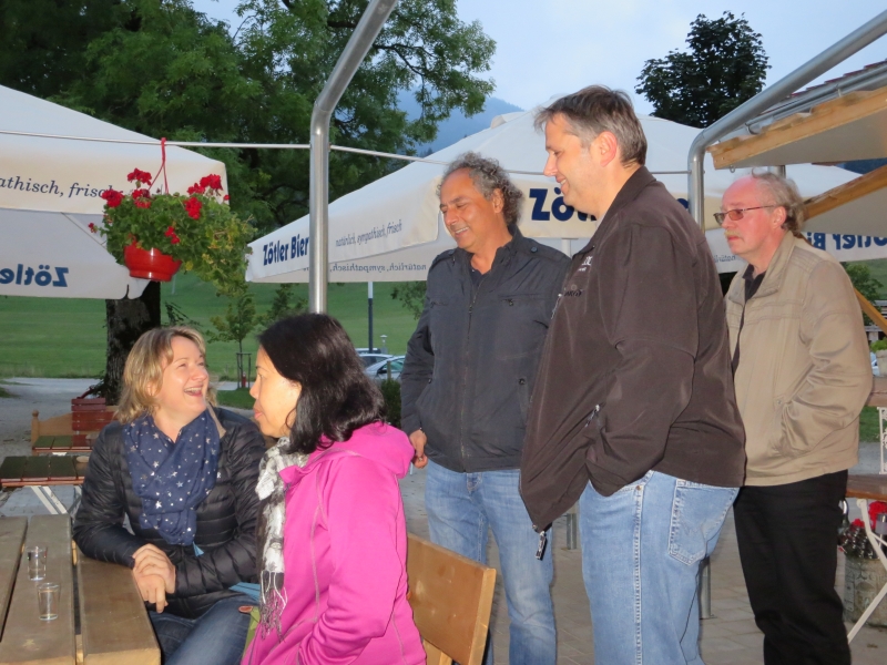 Am Samstag, den 23.September reisten alle nach Nesselwang im Allgäu an. Untergebracht waren wir im Explorer Hotel „Neuschwanstein“. Nach dem einchecken traf man sich auf der Terrasse des Hotels. Ab 19 Uhr gab es nebenan im „Grillhouse Sonnenbichl“ ein Grillbuffet für alle.
