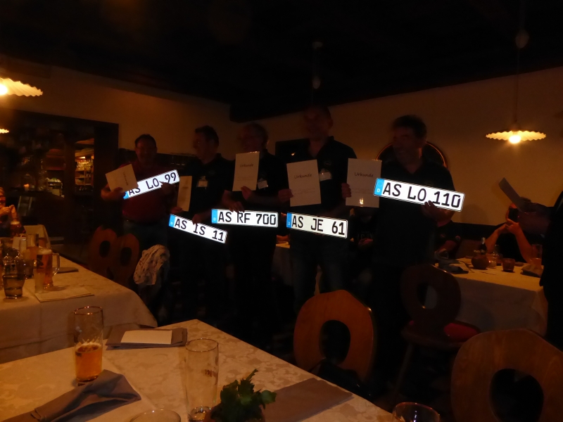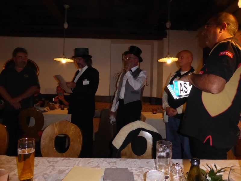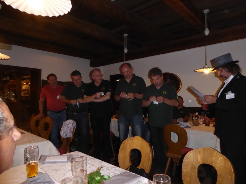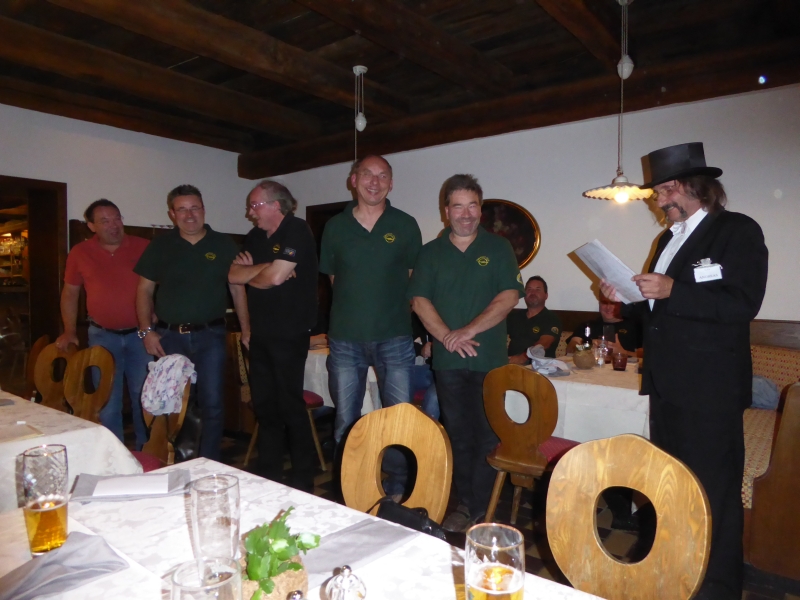 Nach dem Abendessen stand an diesem Abend die Aufnahme und Ehrung neuer Clubmitglieder in den Kreis der „Alten Säcke“ an. Diese Ehre wurde Bernd, Edgar, Jens, Stefan und Rolf, zuteil. Herzlichen Glückwunsch. Ich kann euch jetzt schon sagen, es wird nicht besser. Andreas hielt die festliche Ansprache.
