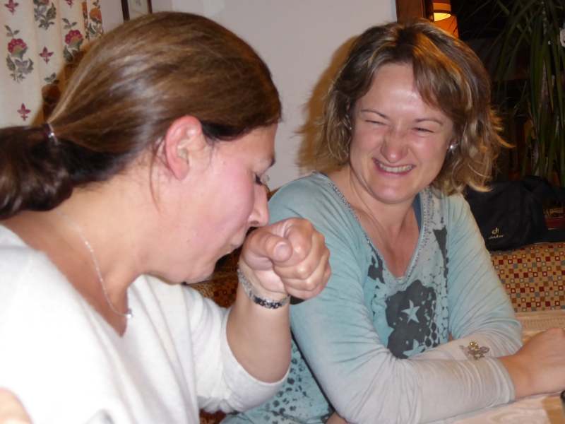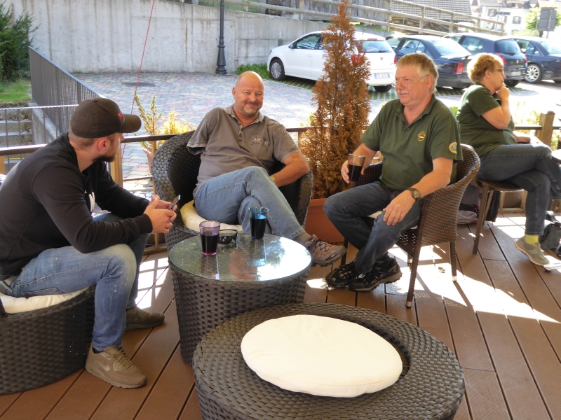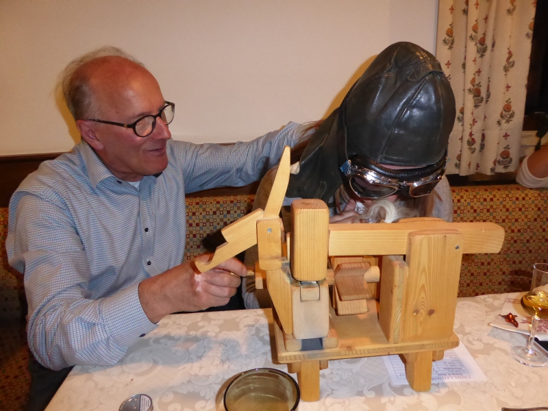 Nach dem Abendessen war es für einige noch ein feucht-fröhlicher Abend. Hotelier Hans versuchte mir zur geistigen Ertüchtigung das Gehirn zu durchlüften, mit Schnupftabak, passendem Schussapparat und zugehöriger Sicherheitsausstattung. Der Erfolg war für mich zweifelhaft, weil ich kurz benommen war und überschüssiger Wasserdruck sich über meine Augen abbaute, was wiederum meine Sehkraft vorübergehend beeinträchtigte. Andere waren wohl von meiner Behandlung begeistert.