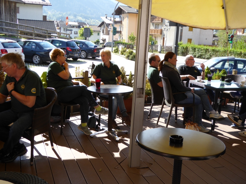 Am Dienstag, den 26. September führte uns die Ausfahrt Richtung Osten bis unterhalb der Drei Zinnen. Die Nacht war kalt und wegen der hohen Luftfeuchtigkeit waren unsere Autos klatsch nass. Helmut begann den Tag nach dem Frühstück mit Wagenpflege.