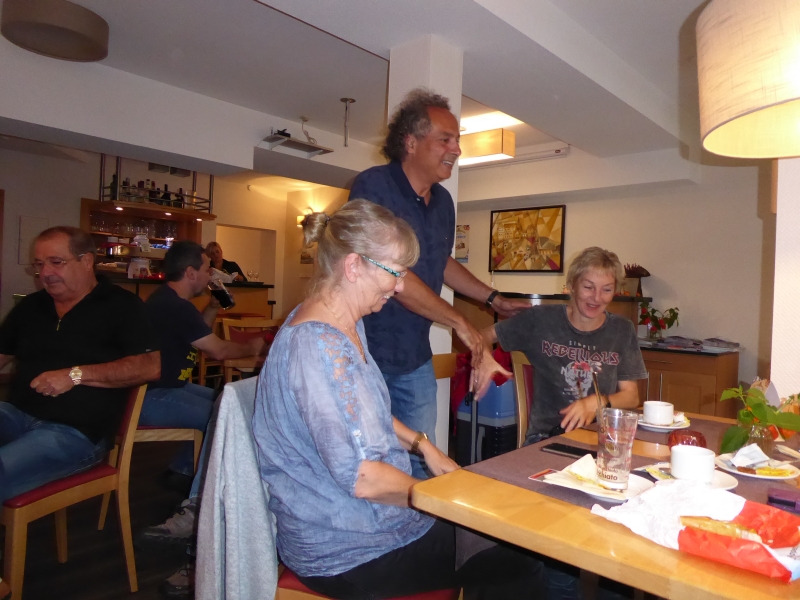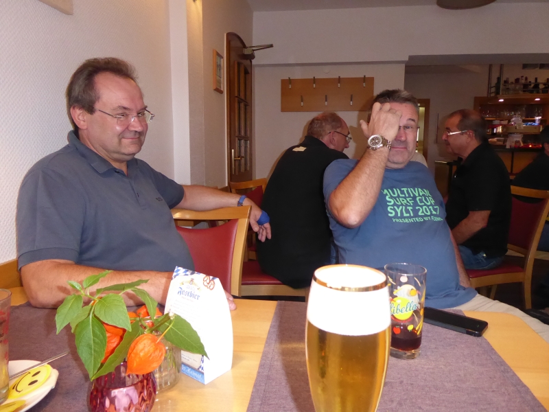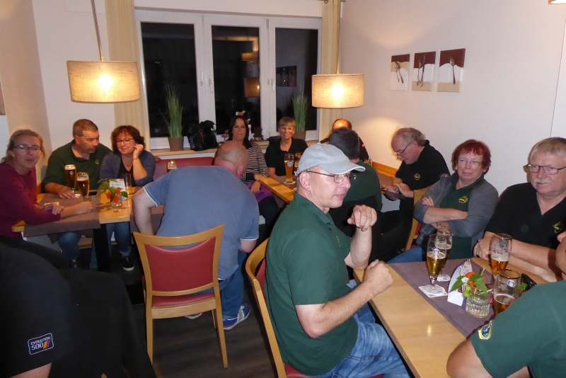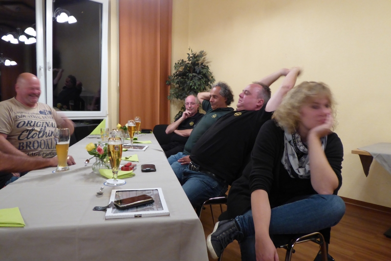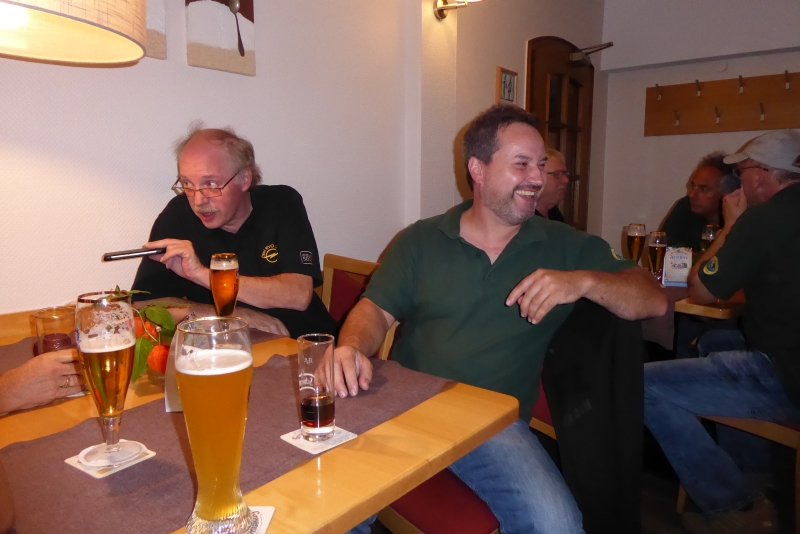 Wir hatten an dem Abend noch viel Spaß, Edgar und Holger machten Lockerungsübungen im Sitzen und zum Schluss tranken einige noch Feuerwasser. Wegen der Heimreise am nächsten Morgen wurde es nicht so spät wie am Vorabend.