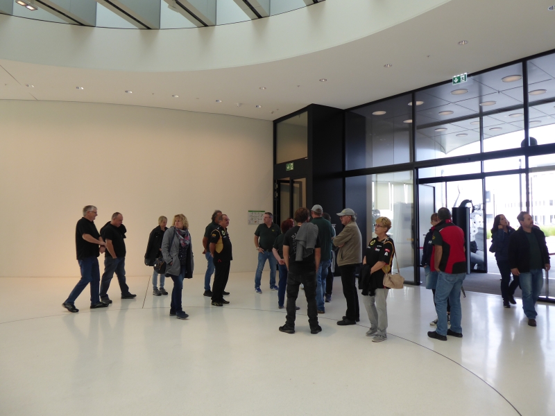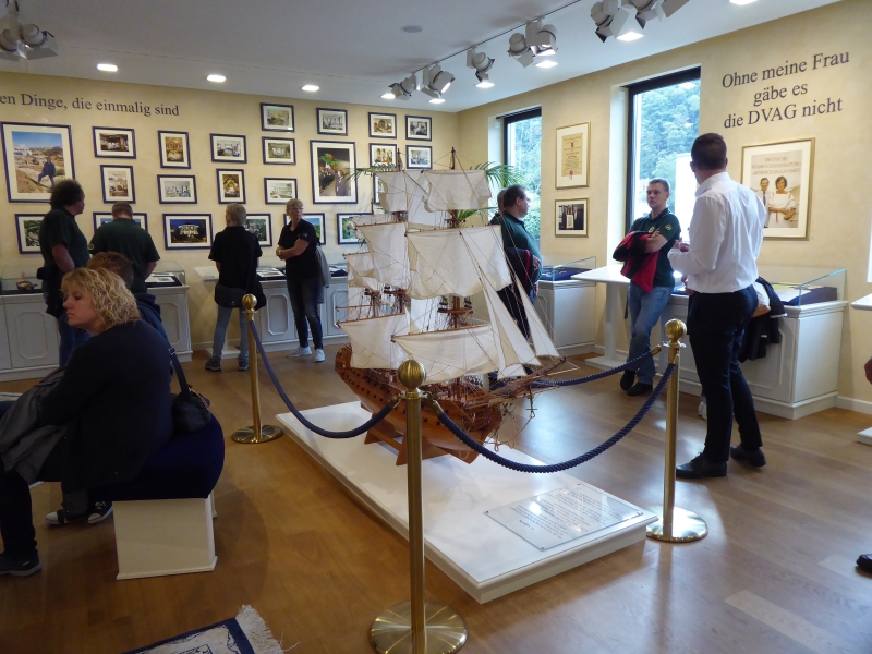 Die Führung begann mit der Vorstellung der Person Dr. Reinfried Pohl (1928 bis 2014), der 1970 unter dem Dach des Deutschen Herold die erste Vermögensberatungsgesellschaft, die Bonnfinanz, aufbaute. Zeitlebens verfolgte er sein Konzept, das Angebot und die Dienstleistungen von Banken, Bausparkassen, Versicherungen und Kapitalanlageunternehmen vertrieblich zusammen zu führen. Am Ende dieses Prozesses entstand die „Deutsche Vermögensberatung“, deren Werbepartner Michael Schumacher war. Die beiden hatten wohl auch ein enges privates Verhältnis. Dr. Pohl lag mit einem Vermögen von ca. 3,1 Mrd. Euro auf Platz 31 der reichsten Deutschen. Eins hatte er zeitweise mit uns gemeinsam: Er fuhr seinerzeit einen Opel Diplomat. Unsere Omegas gab es zur dieser Zeit ja noch nicht.