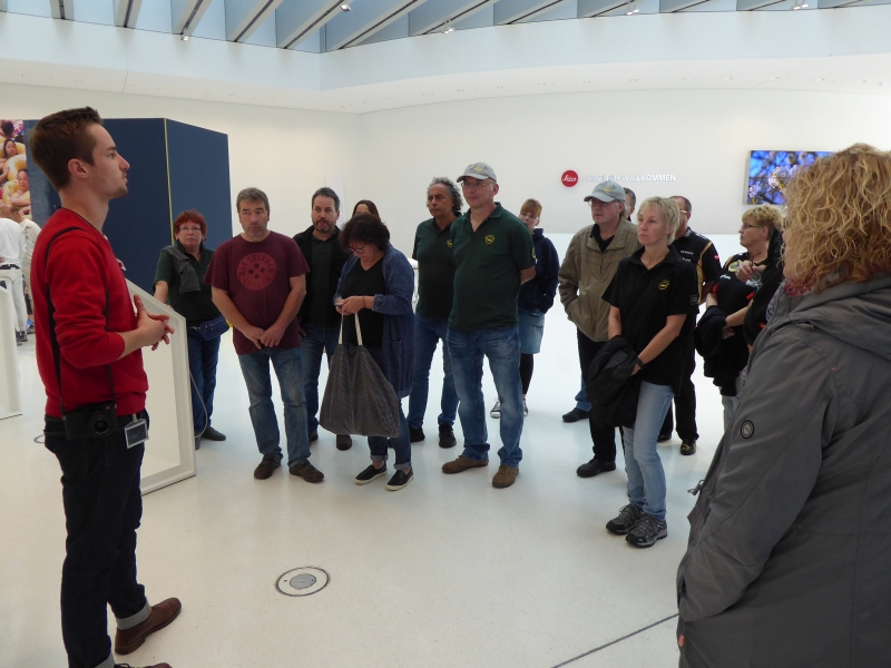 Die Führung startete in der Eingangshalle und brachte uns die Historie des Unternehmens näher. Dazu erhielten wir Einblick in die Produktion der Präzisionslinsen. Der entscheidende Durchbruch des Unternehmens begann mit der Ur-Leica von Oscar Barnack aus dem Jahre 1914. Eine Kamera für 35 mm Kino - Rohfilme.