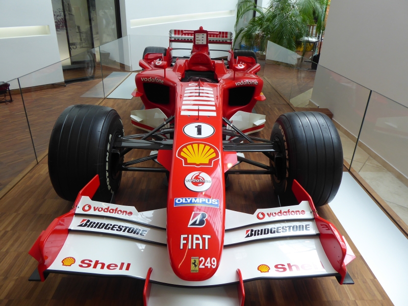 Nach dem Besuch bei Leica fuhren wir zurück ins Hotel. Von dort brachen wir mit Taxen zur Innenstadt von Marburg auf. Hier stand als Erstes der Besuch der Michael Schumacher Ausstellung im Dr. Reinfried Pohl Zentrum für Vermögensberatung auf dem Programm. In der Eingangshalle konnten wir Michaels Ferrari aus 2005 bestaunen. Vor der Führung stärkten wir uns im Restaurant des Hauses an einem süßen Buffet.