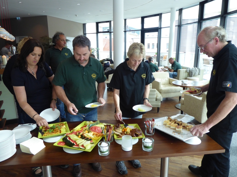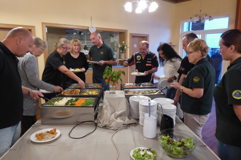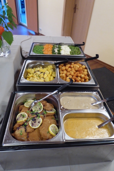 Ab 19 Uhr trafen wir uns in unserem Veranstaltungsraum zum Abend-Buffet. Es gab Schnitzel mit diversen Beilagen.