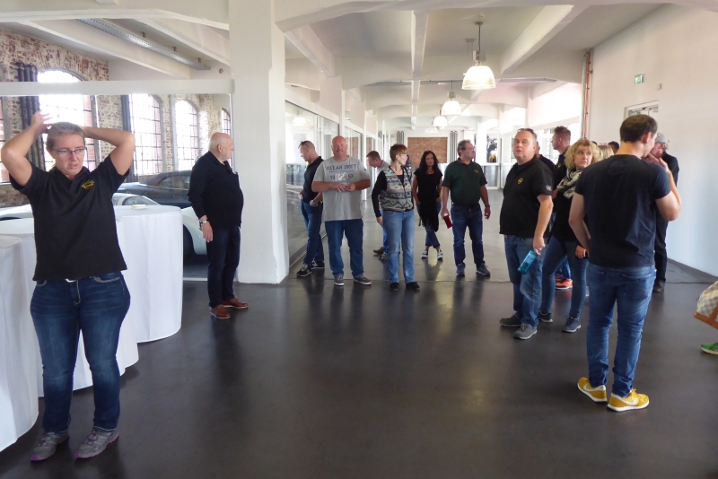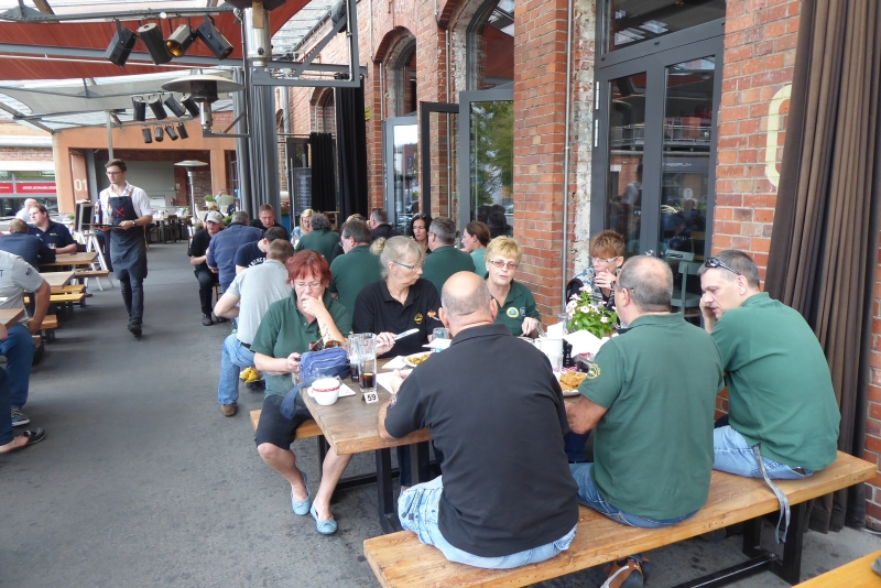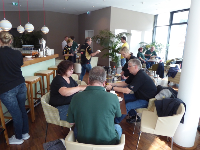 Nach der Führung genehmigen wir uns einen kleinen Snack im Restaurant „Die Werkskantine“. In dieser automobilen Atmosphäre, Blick auf unsere Autos inklusive, schmeckte es besonders gut.