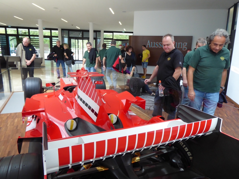 Er hat für berühmte Persönlichkeiten Gepäckstücke gefertigt und für Autofirmen wie BMW; Porsche, Mercedes, Ferrari und Lamborghini Gepäckausstattungen geliefert. Er hatte Kontakte zur Formel 1, ob Fahrer oder Teams. Und so konnte er bei unserem Rundgang viele Geschichten zu den Autos und seinen Erlebnissen erzählen. Es war eine sehr kurzweilige Führung.