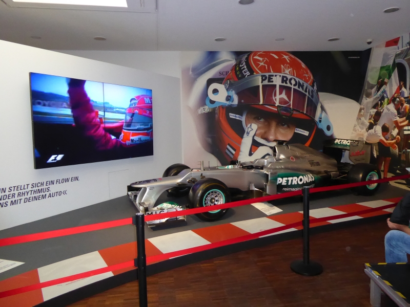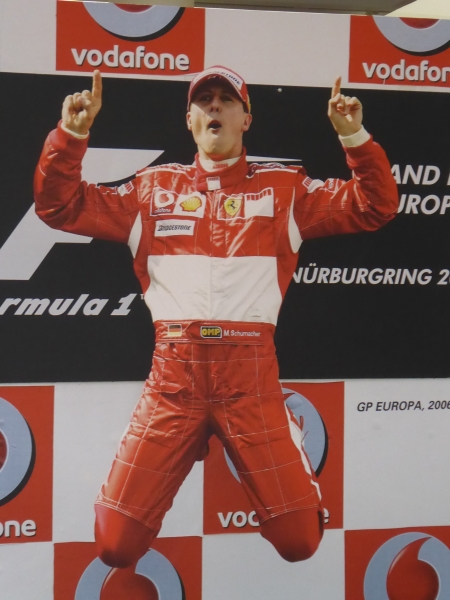 Dann endlich die Ausstellung über die Karriere des Rekordchampions. Ich persönlich bin ein absoluter MS Fan und war begeistert über die vielen Exponate aus der Motorsportlaufbahn von diesem Ausnahmetalent. In der Ära Schumacher habe ich fast kein Formel 1- Rennen verpasst und man mag es glauben oder nicht, aber ich bin mit meinen Gedanken sehr oft bei ihm.