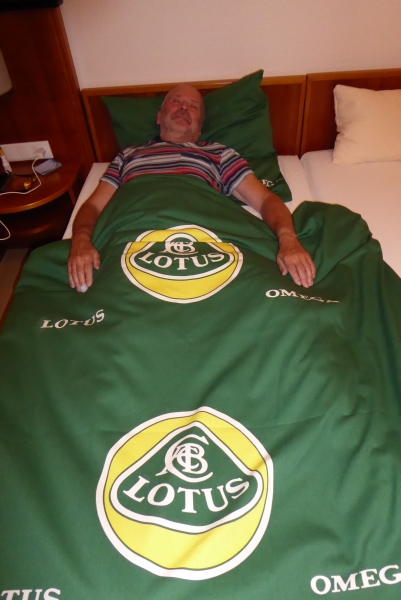 Auf der anderen Straßenseite hatte uns das Hotel einen speziell für uns reservierten Parkplatz abgetrennt und ausgeschildert. Unser Organisationstrio hatte das Hotel wohl über unseren Clubnamen falsch informiert oder eventuell nur Lotusfahrer erwartet