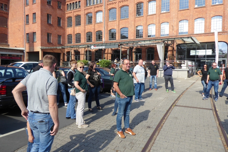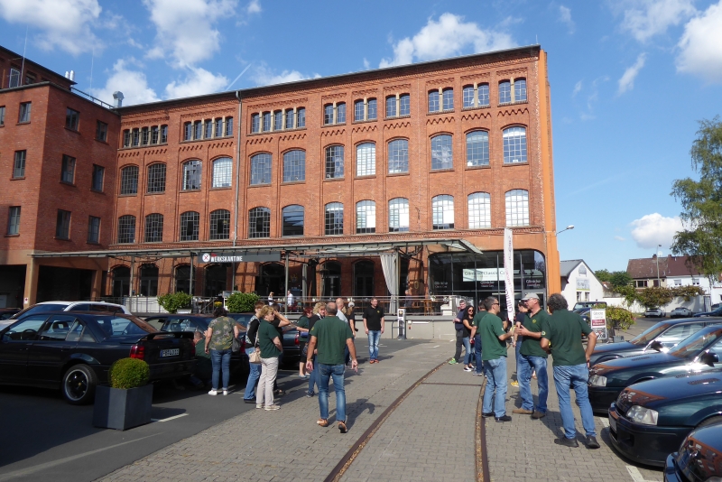 In Frankfurt angekommen parkten wir vor dem monumentalen Fabrikgebäude unsere Autos.