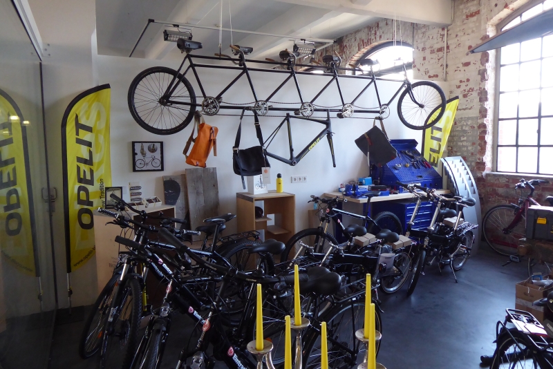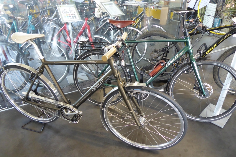 Im zweiten Obergeschoss befinden sich verglaste Einstellboxen (Boxengasse genannt), die für 250 Euro netto angemietet werden konnten. Ein Platz ist das ganze Jahr über wohl temperiert, verfügt über einen Stromanschluss und kann jederzeit mittels einer persönlichen Chipkarte uneingeschränkt bedient werden. Bei bis zu siebenstelligen Werten einiger Autos spielt die Miete nicht wirklich eine Rolle. Plötzlich stehen wir vor einem Fahrradshop mit dem Namen Opelit. 1947 gründet Georg von Opel, Enkel von Adam Opel, die Opelit GmbH, die unter anderem für Innovationen und Präzision im Bau von Booten, anderen Sportgeräten und Straßenfahrzeugen bekannt ist. Aus Begeisterung für das Fahrrad und den Sport schreibt Gregor von Opel, Urenkel von Adam, nun 85 Jahre später die Fahrradgeschichte der Dynastie fort und bringt mit Opelit eine neue Fahrradlinie auf den Markt.